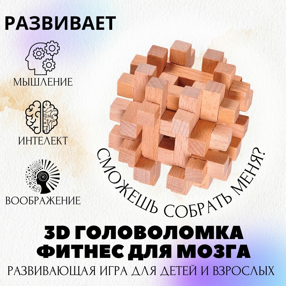 Купить Геометрическая фигура № 10. Деревянная 3D головоломка для мозга, игра для взрослых и детей