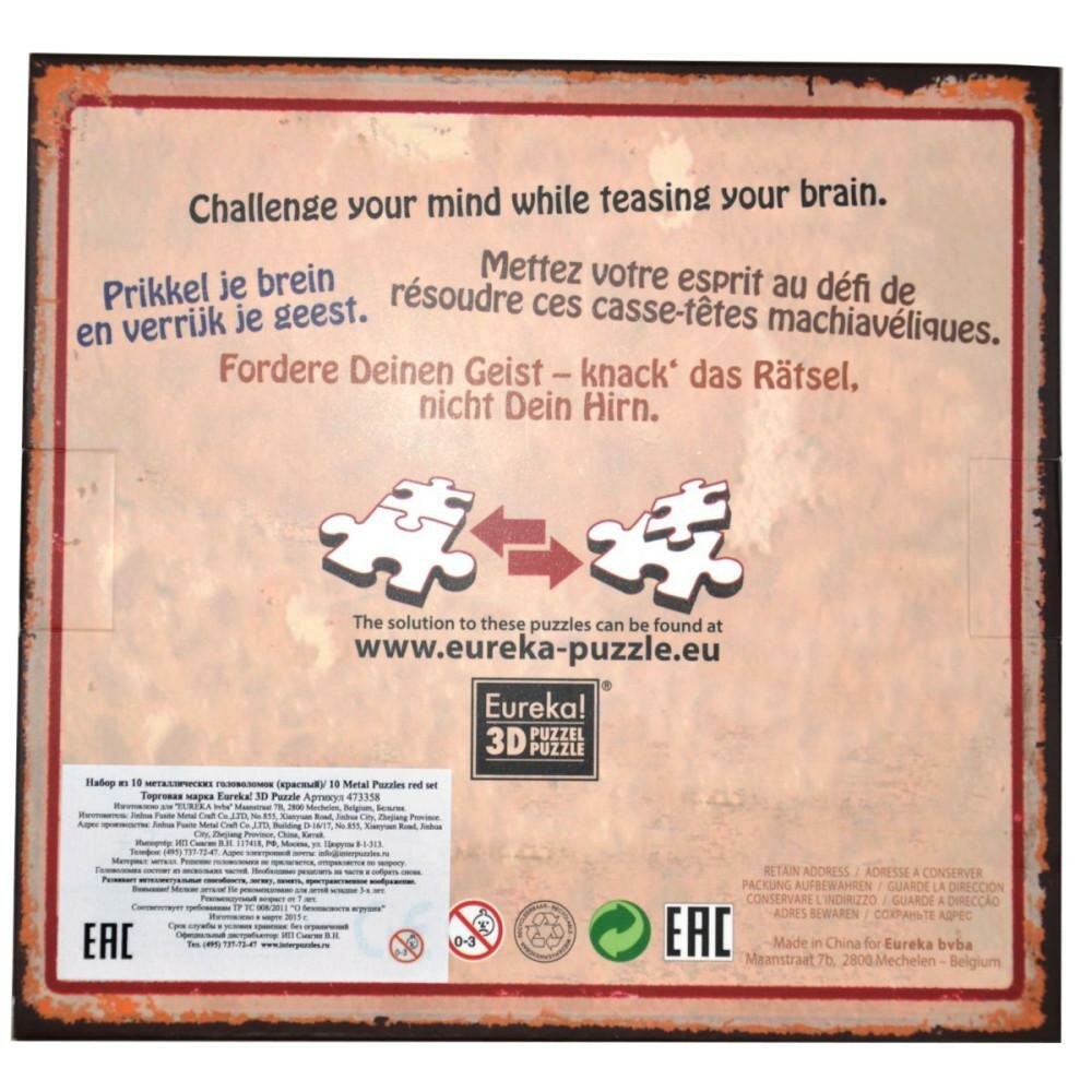 Набор головоломок Hanayama Красный / 3D Puzzle 10 Metal Puzzles red set, 10 шт. интересное: