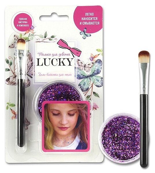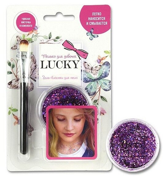 Lucky гель-блестки для тела/лица в наборе с кисточкой, цвет фиолетовый 25 мл интересное: