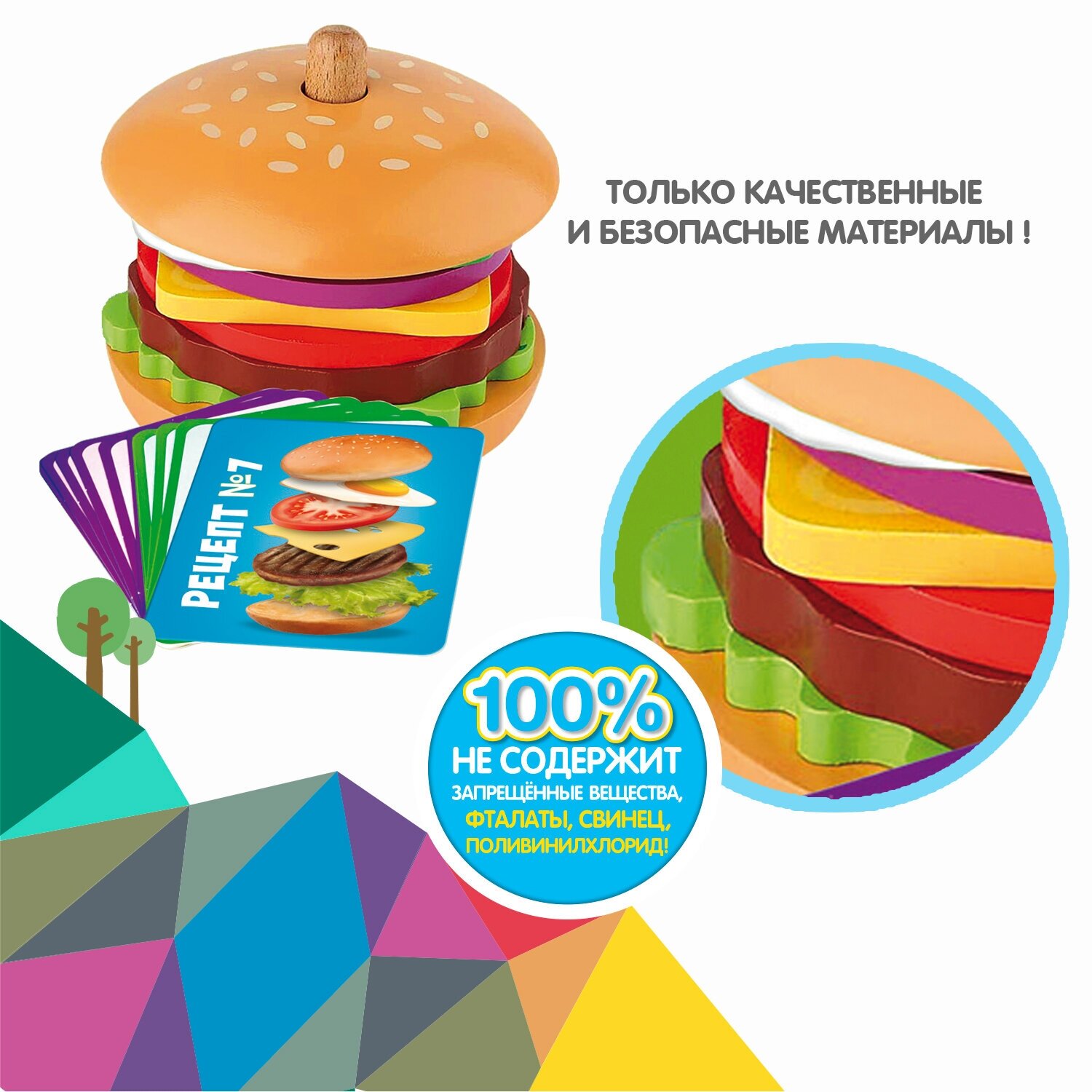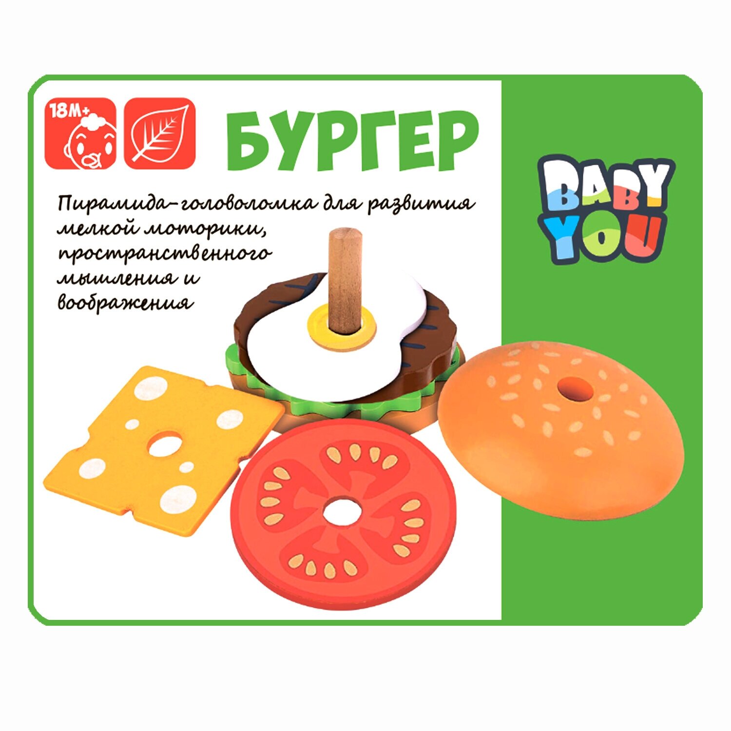 Развивающая головоломка Bondibon пирамидка бургер , игрушка для малышей интересное:
