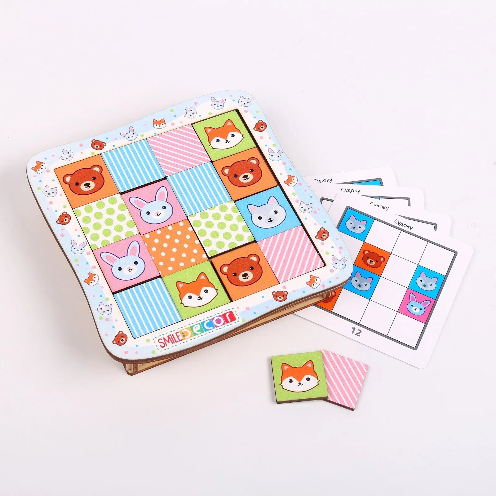 Деревянная головоломка Smile Decor "Лесные жители", развивающая игра с шаблонами-заданиями, сложи по образцу, пятнашки, судоку интересное: