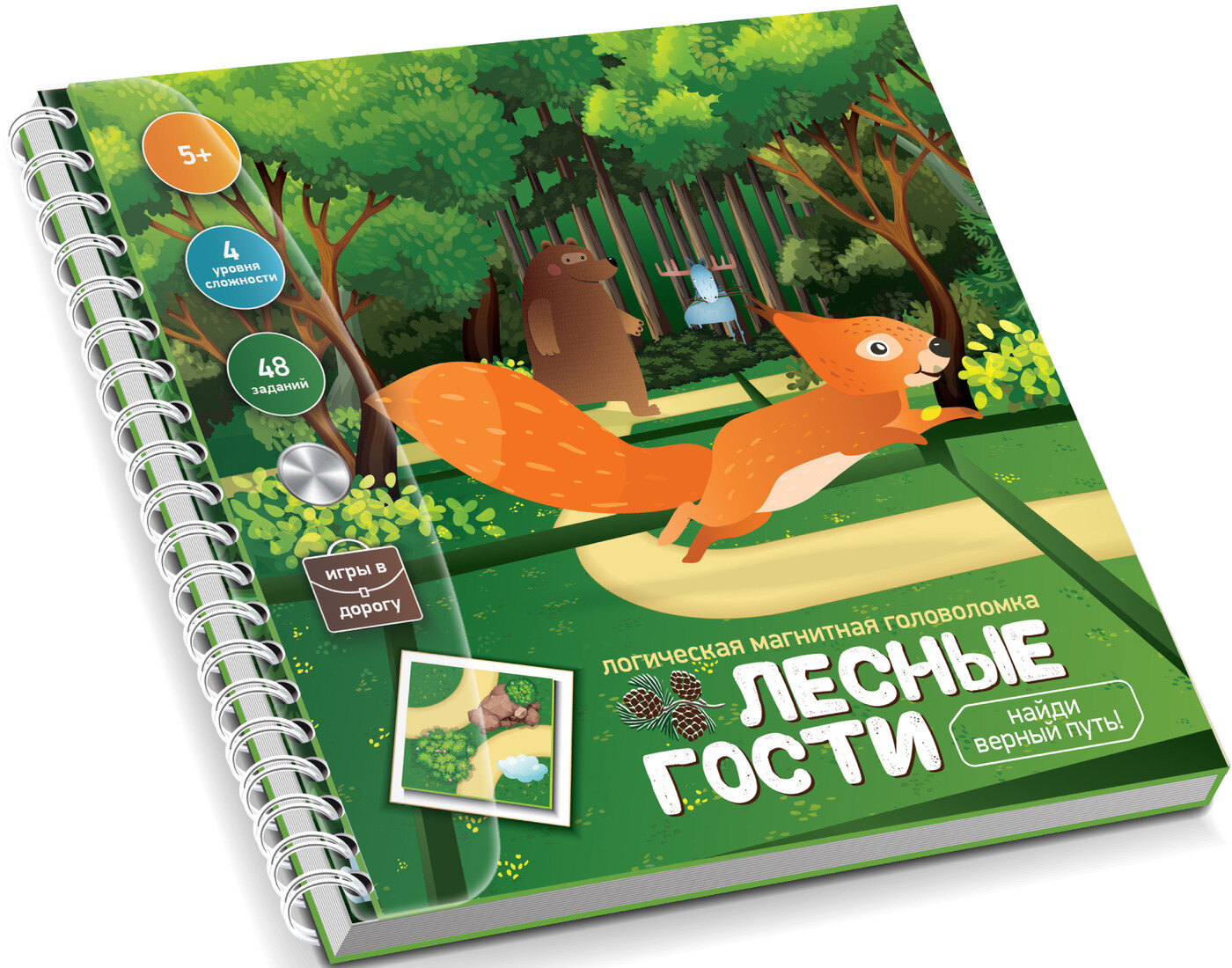 Купить Магнитная игра-головоломка в дорогу "Лесные гости", 4 уровня сложности, 48 логических заданий