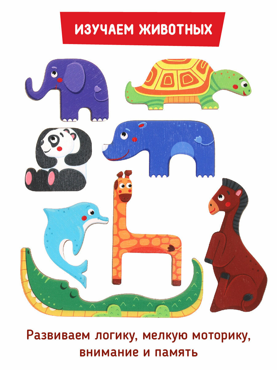 Купить Деревянный пазл головоломка Mapacha "Веселый зоопарк", для развития моторики, внимания и логики