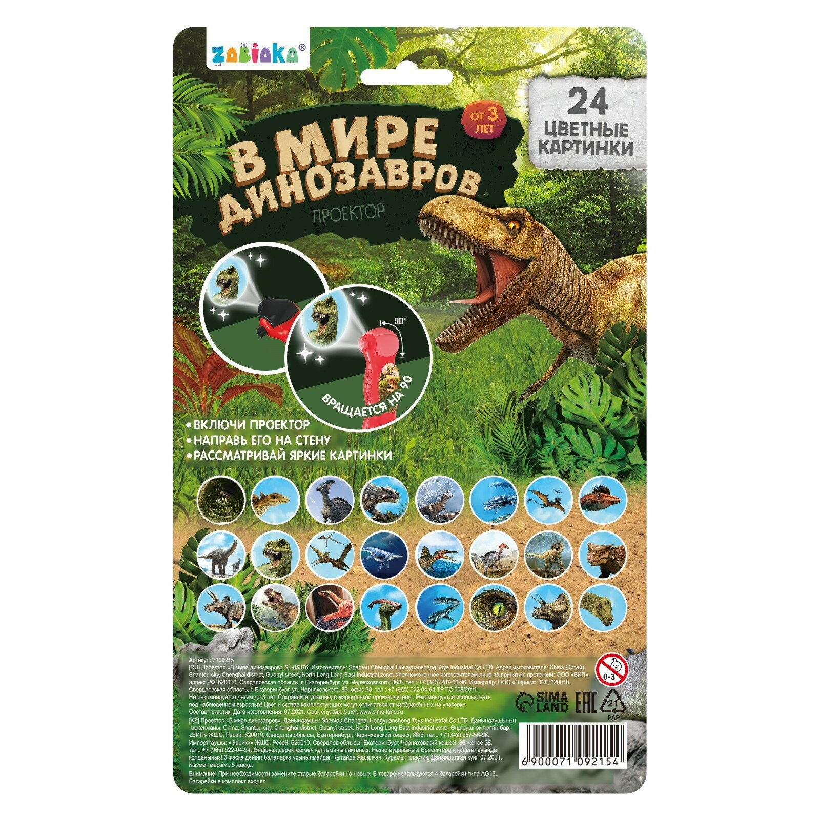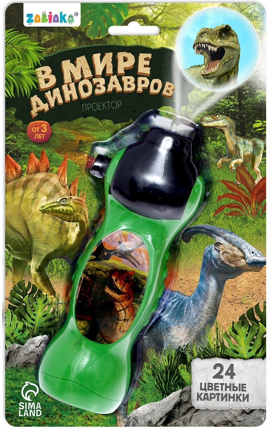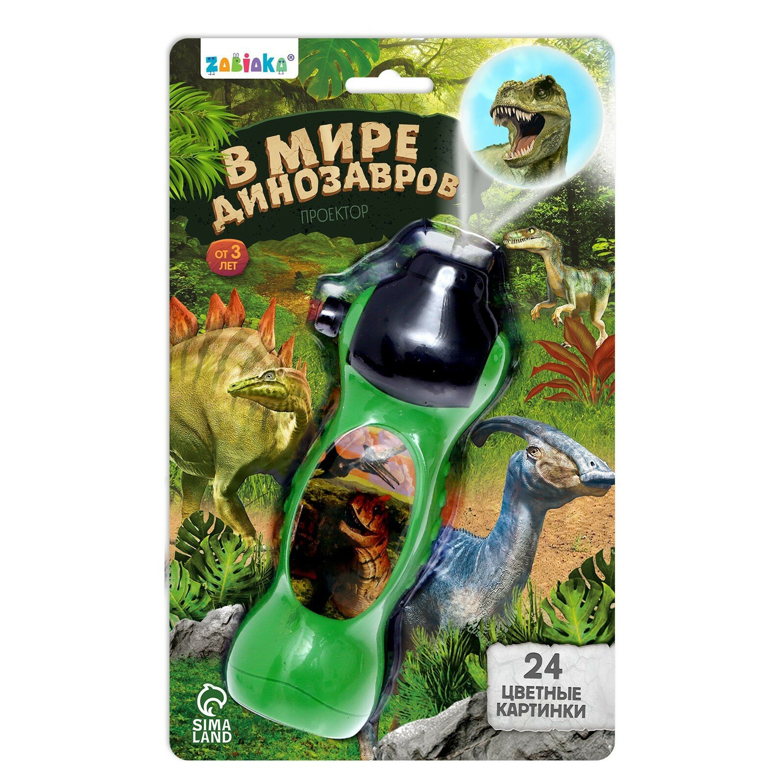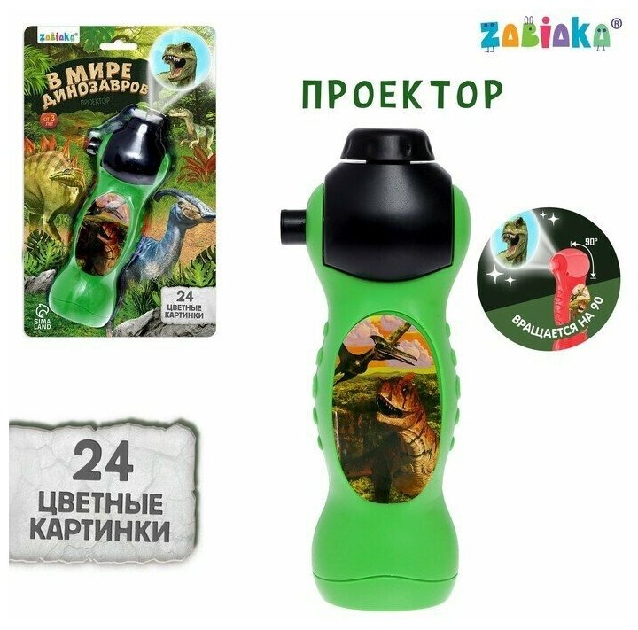 Купить Детский проектор-фонарик "В мире динозавров" для просмотра слайдов, диапроектор, 24 картинки, цвет зелёный