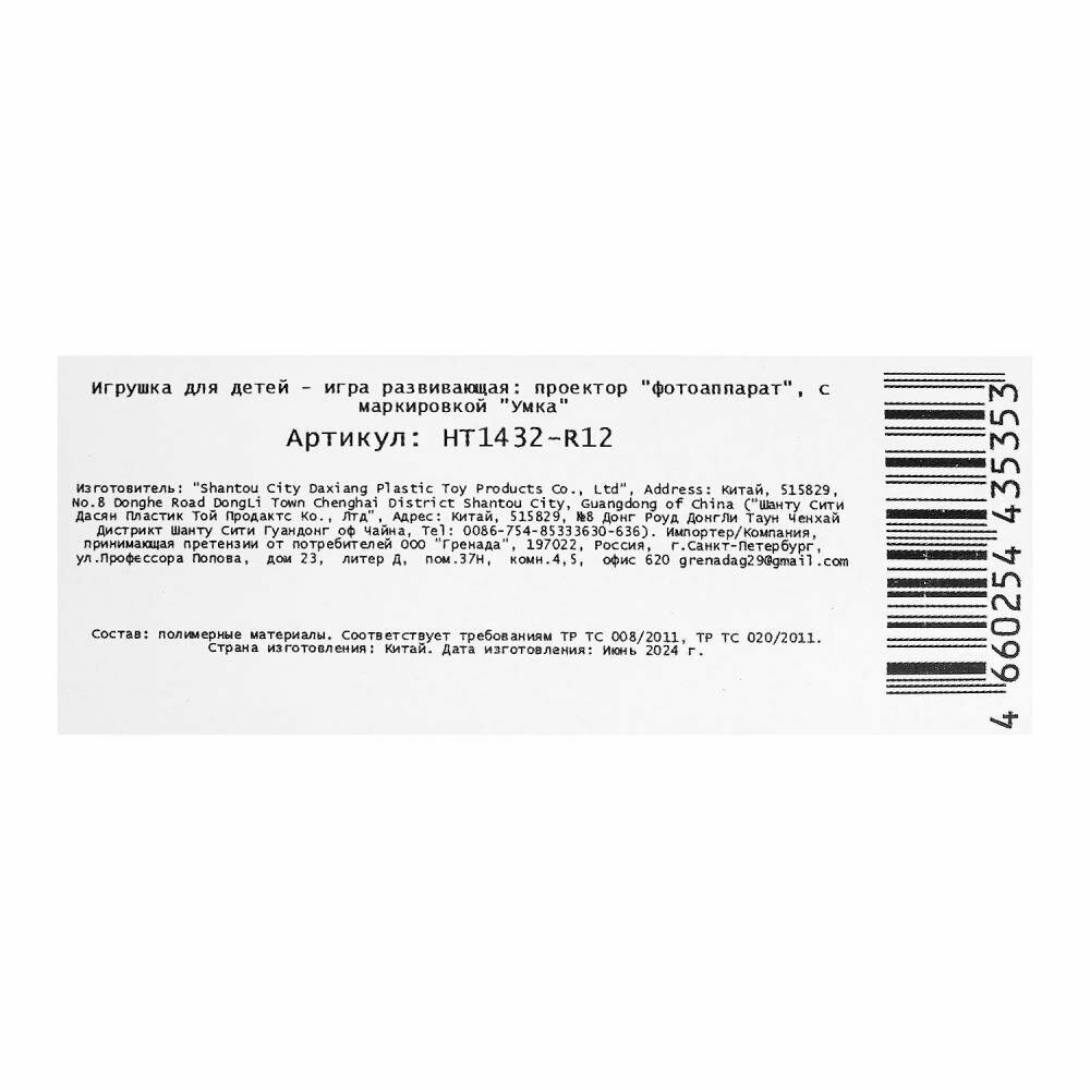 Проектор-фотоаппарат, 8 кадров (игрушка) УМка HT1432-R12 интересное: