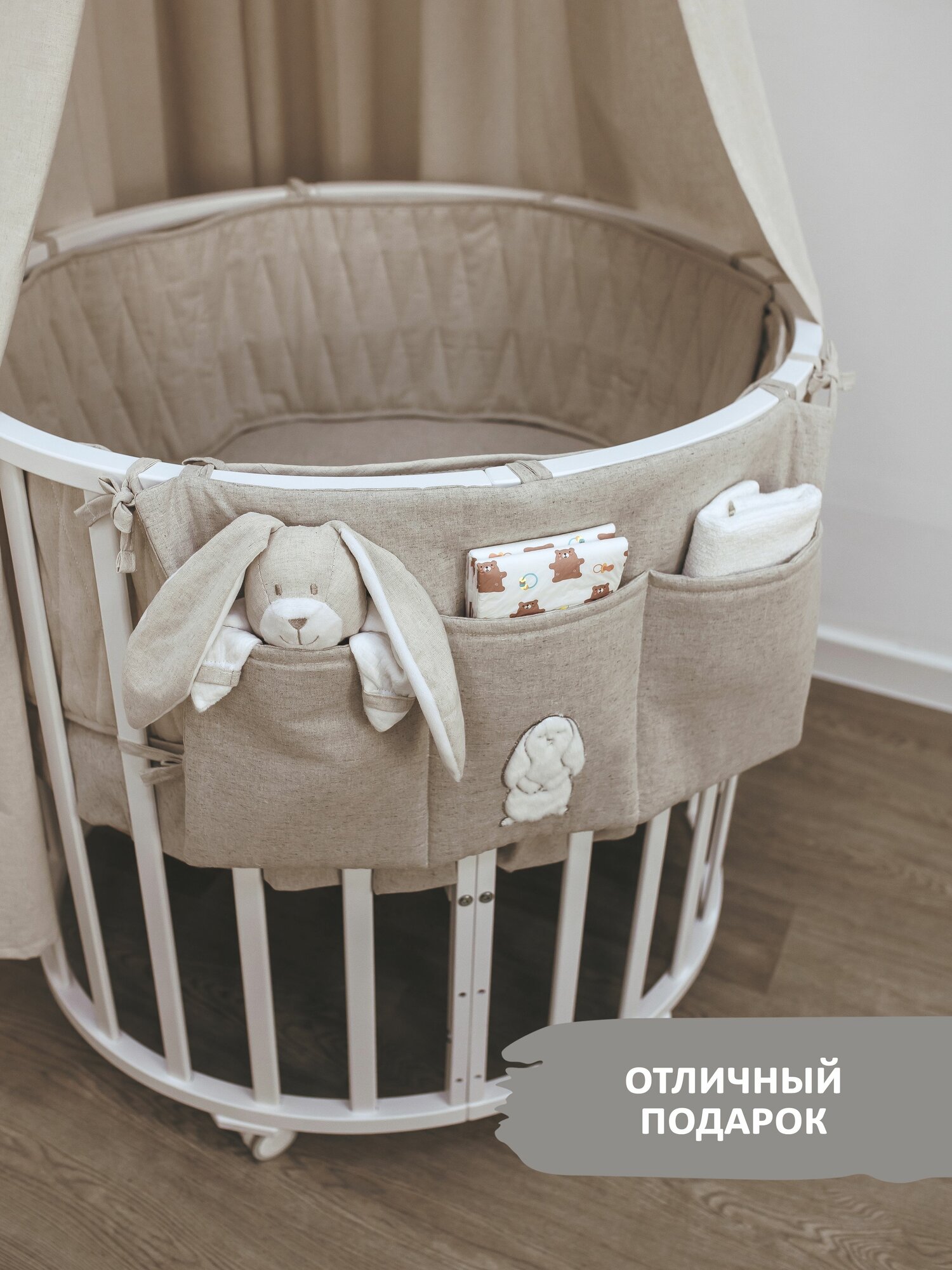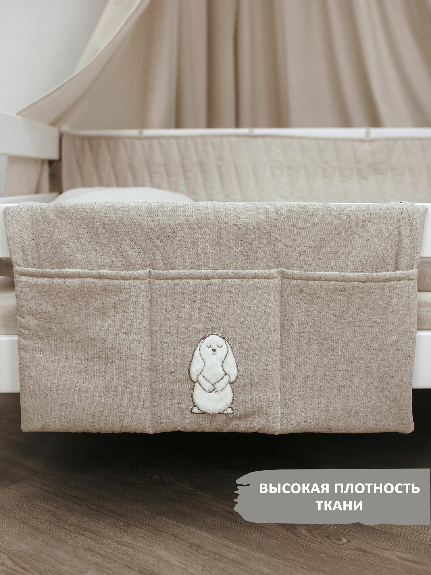 Купить Карман - органайзер на кроватку "Зайка" три отделения, 33,5*59,5см, лен