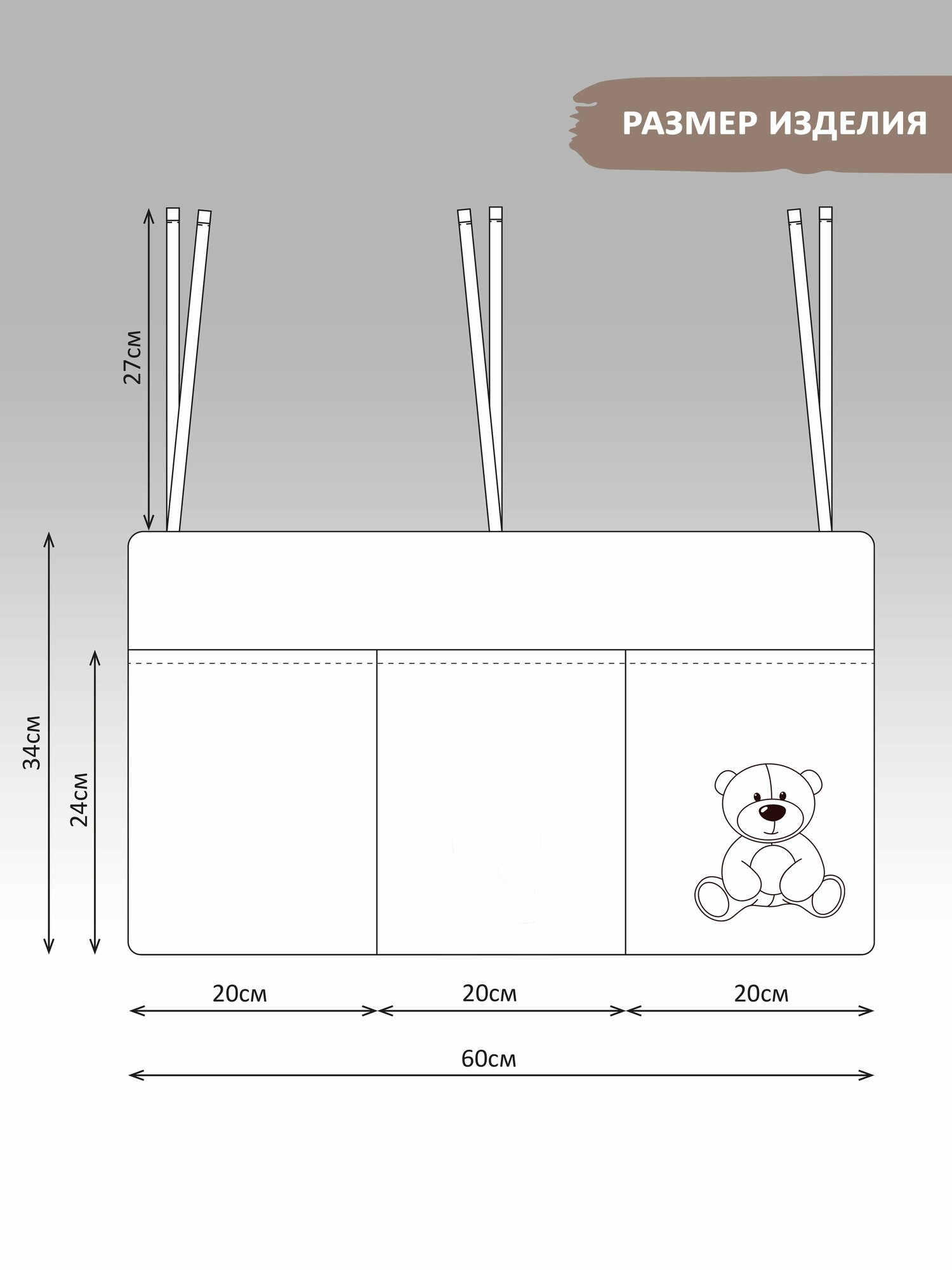 СохранитьКарман - органайзер на кроватку "Мишка" три отделения, 33,5*59,5см, лен интересное: