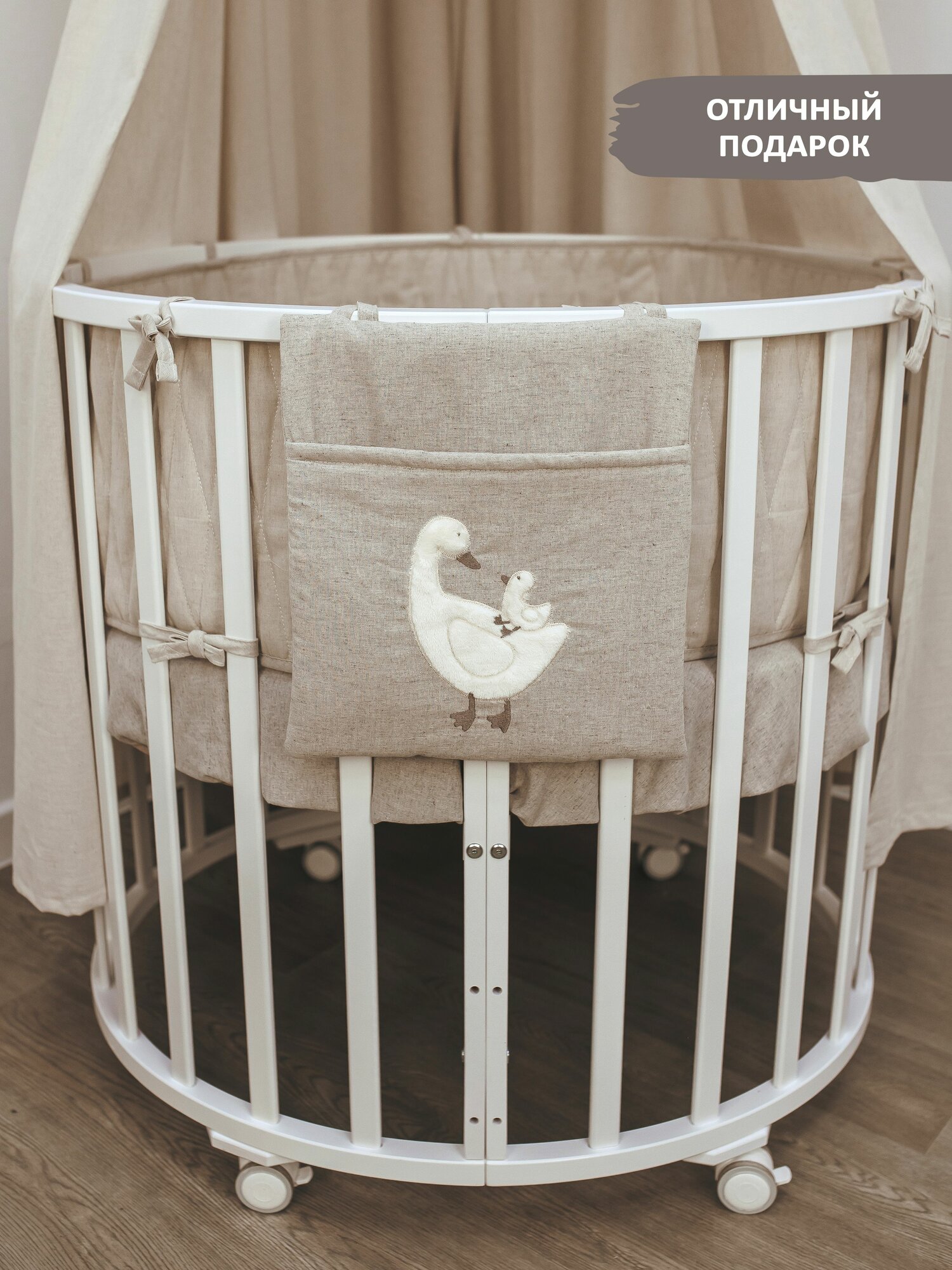 СохранитьКарман - органайзер на кроватку "Гуси" одно отделение, 33,5*29,5см, лен интересное: