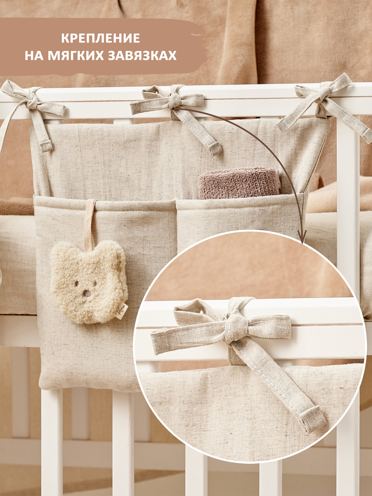 Карман - органайзер на кроватку "Мишка" три отделения, 33,5*59,5см, лен