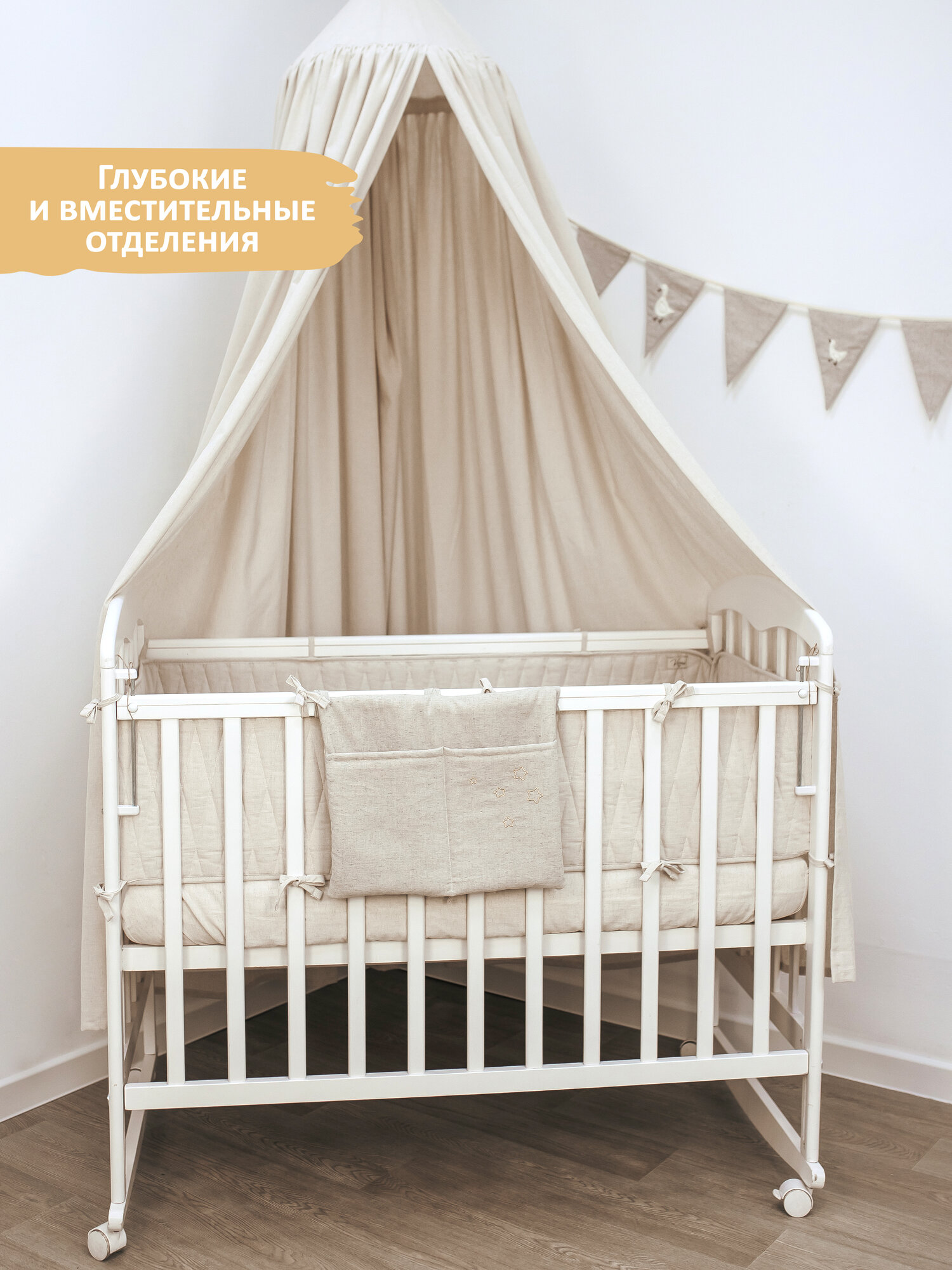 Карман - органайзер на кроватку "Гусь" три отделения, 33,5*59,5см, лен