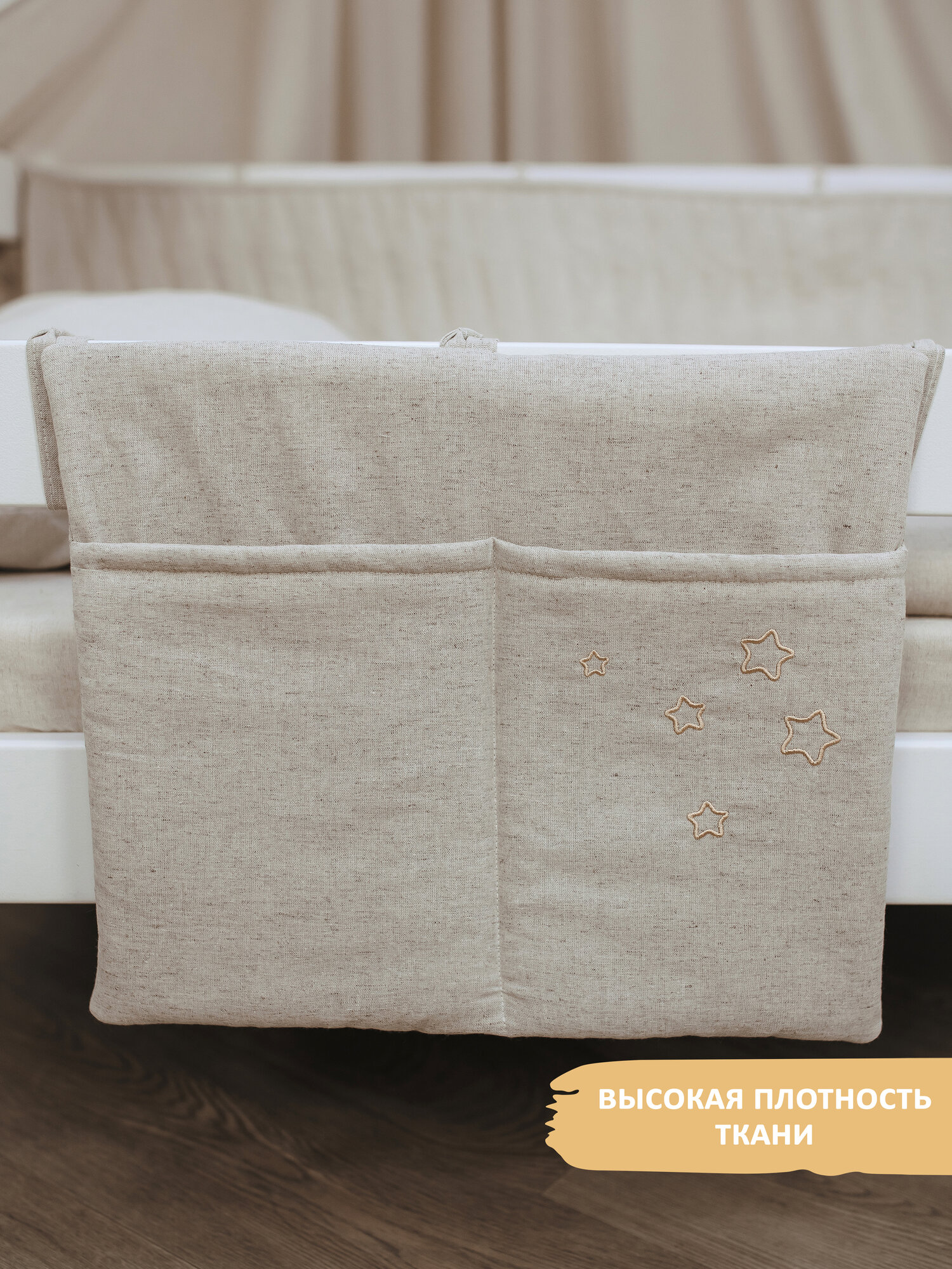 Купить Карман - органайзер на кроватку "Звездочки" два отделения, 33,5*39*5см, лен