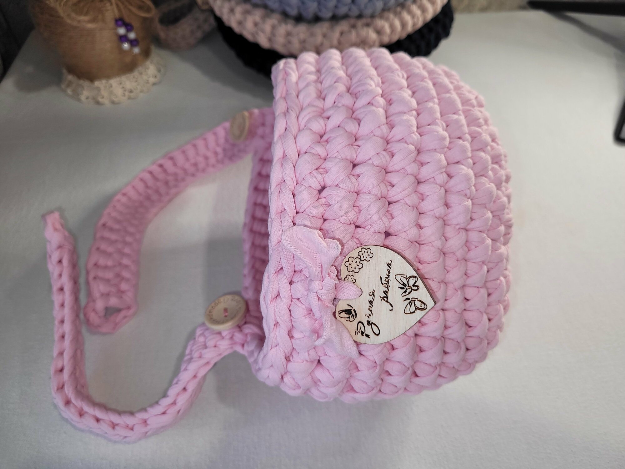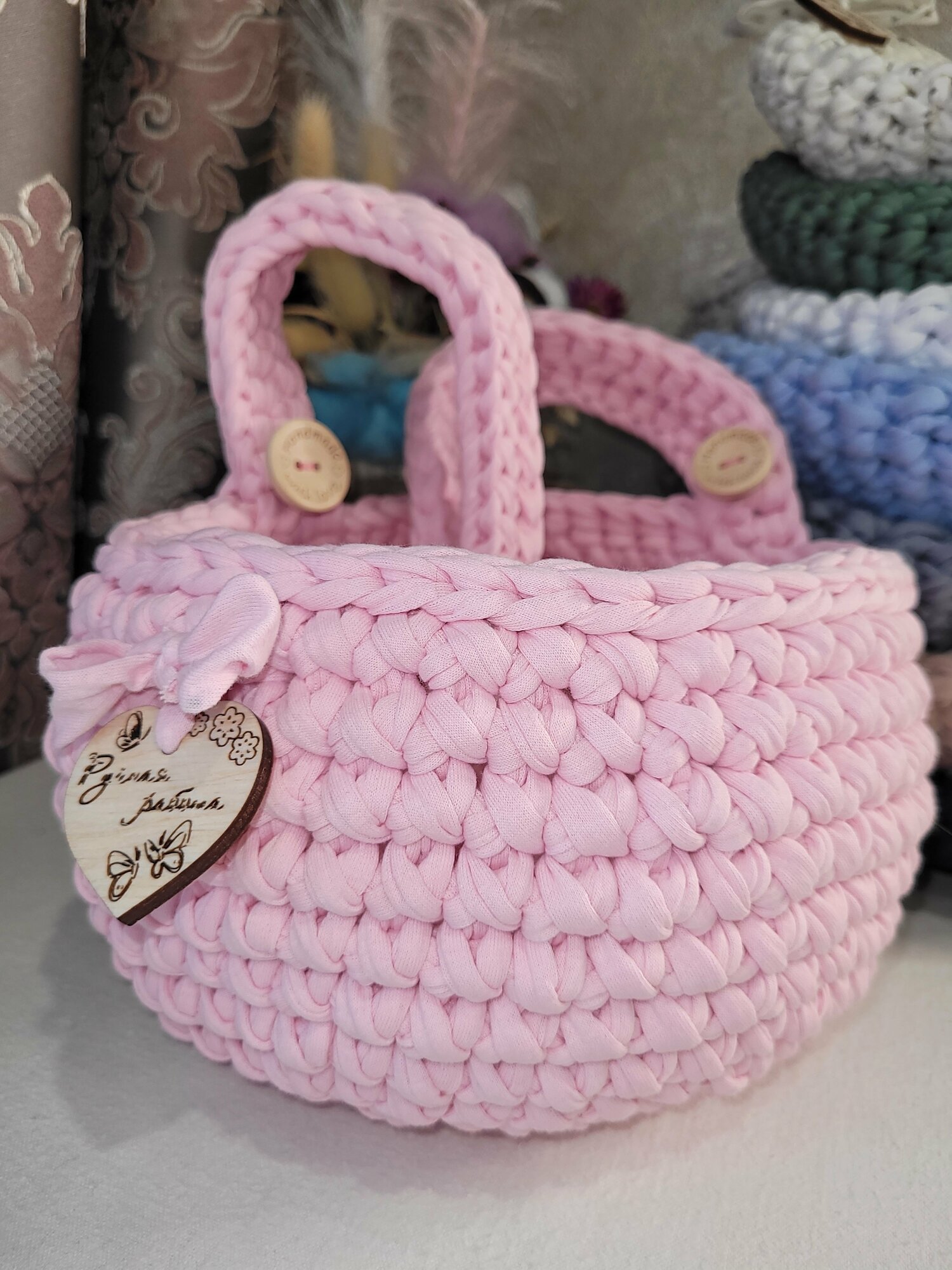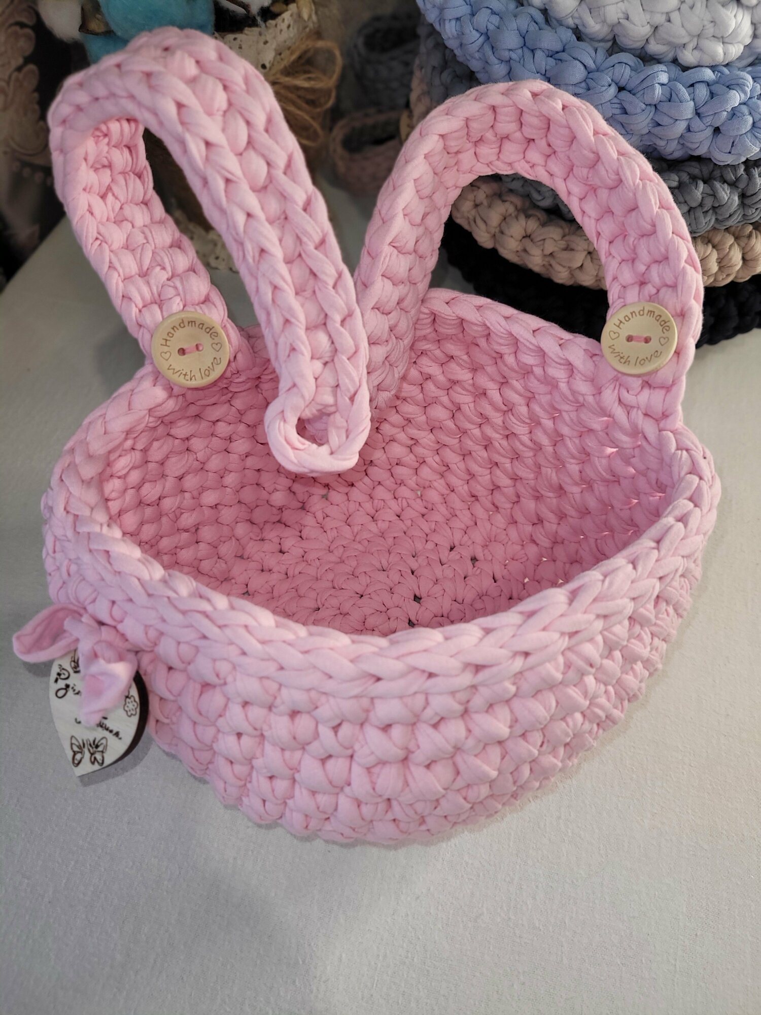 Купить Подвесная корзинка/ вязаный кармашек на детскую кроватку/ нежно- розовая
