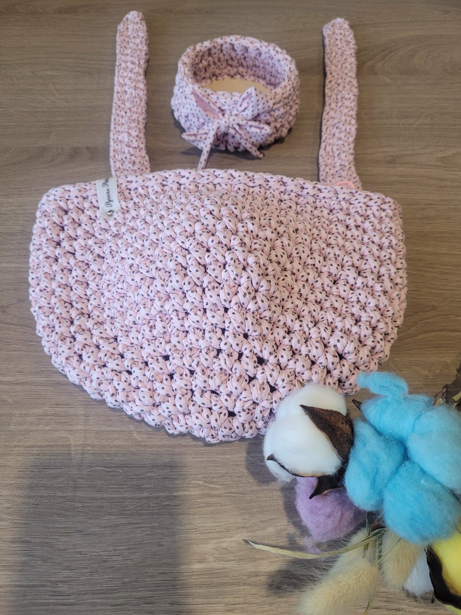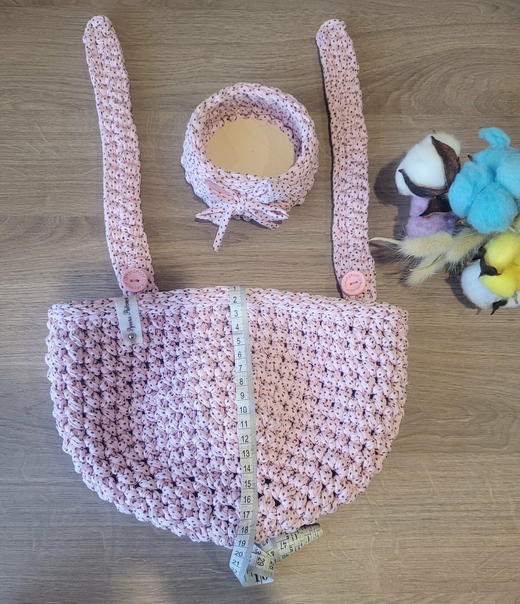 Подвесная корзинка/ вязаный кармашек на детскую кроватку/ нежно- розовая