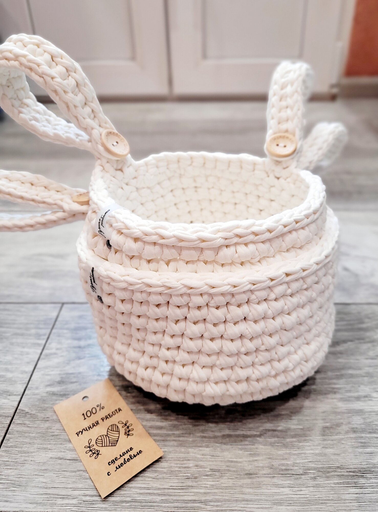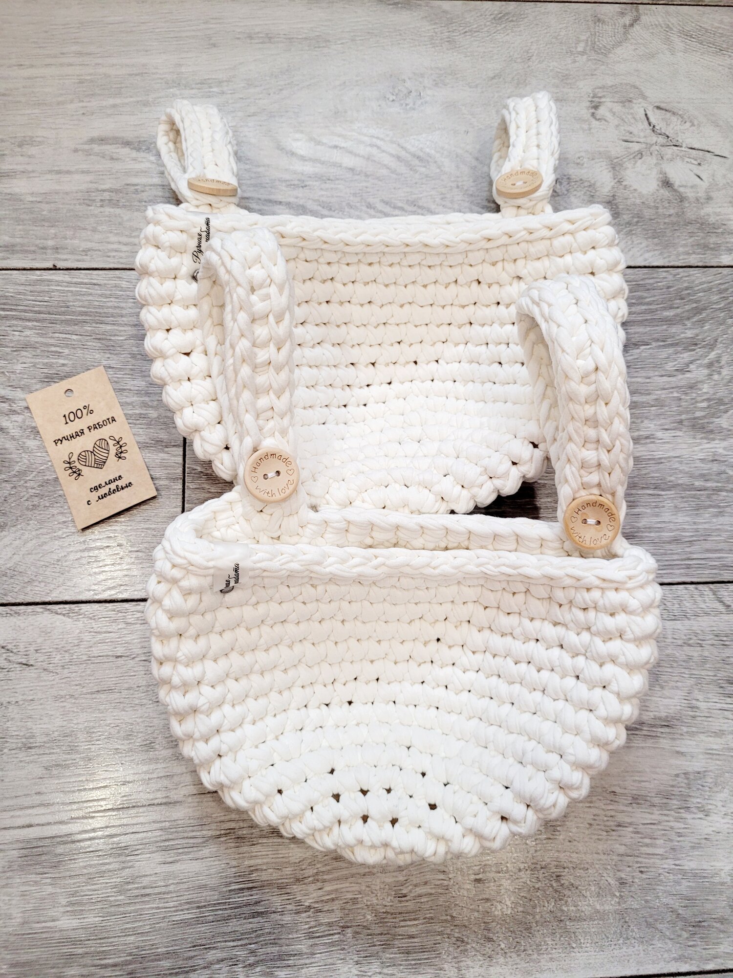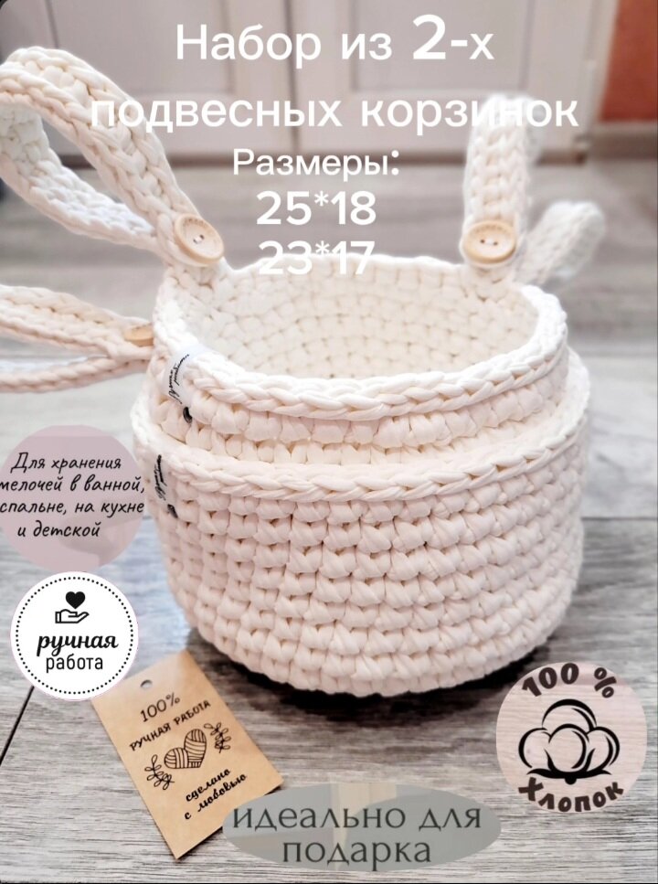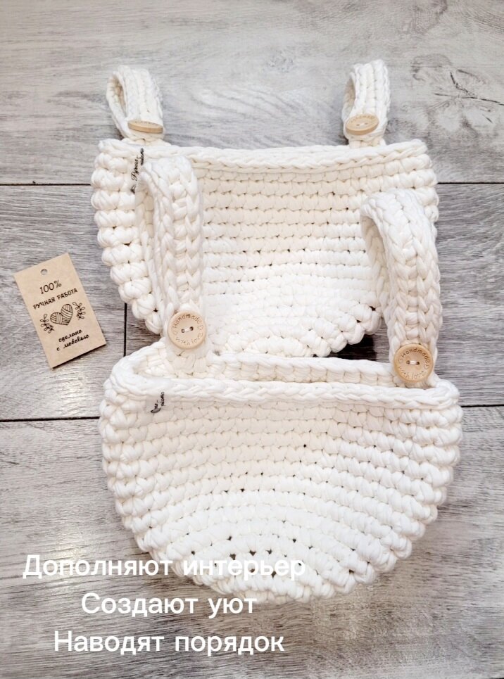 Набор из 2-х корзин /подвесная корзинка/ вязаный кармашек на детскую кроватку/цвет-пломбир интересное: