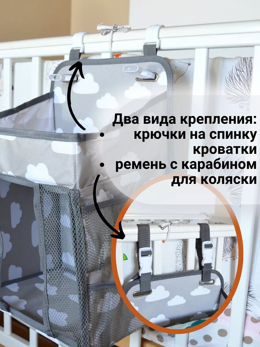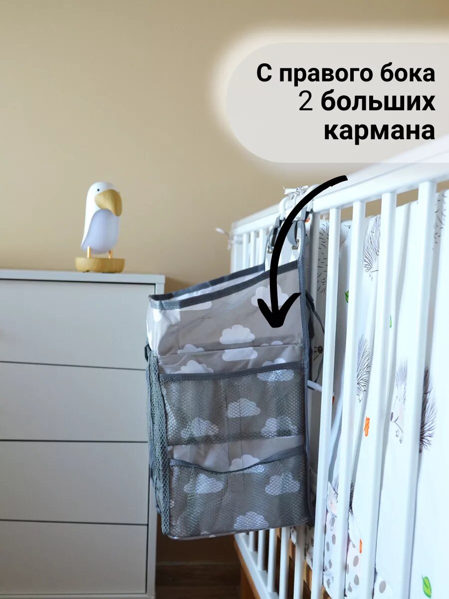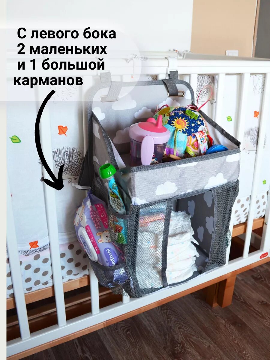 Органайзер подвесной на детскую кроватку для хранения, голубой, 41х26х21 см, складной. интересное: