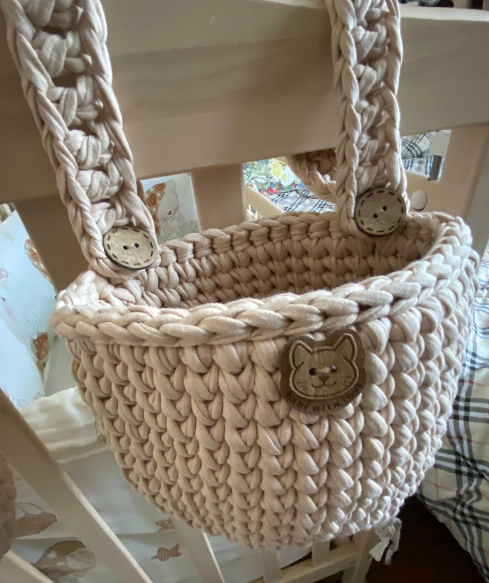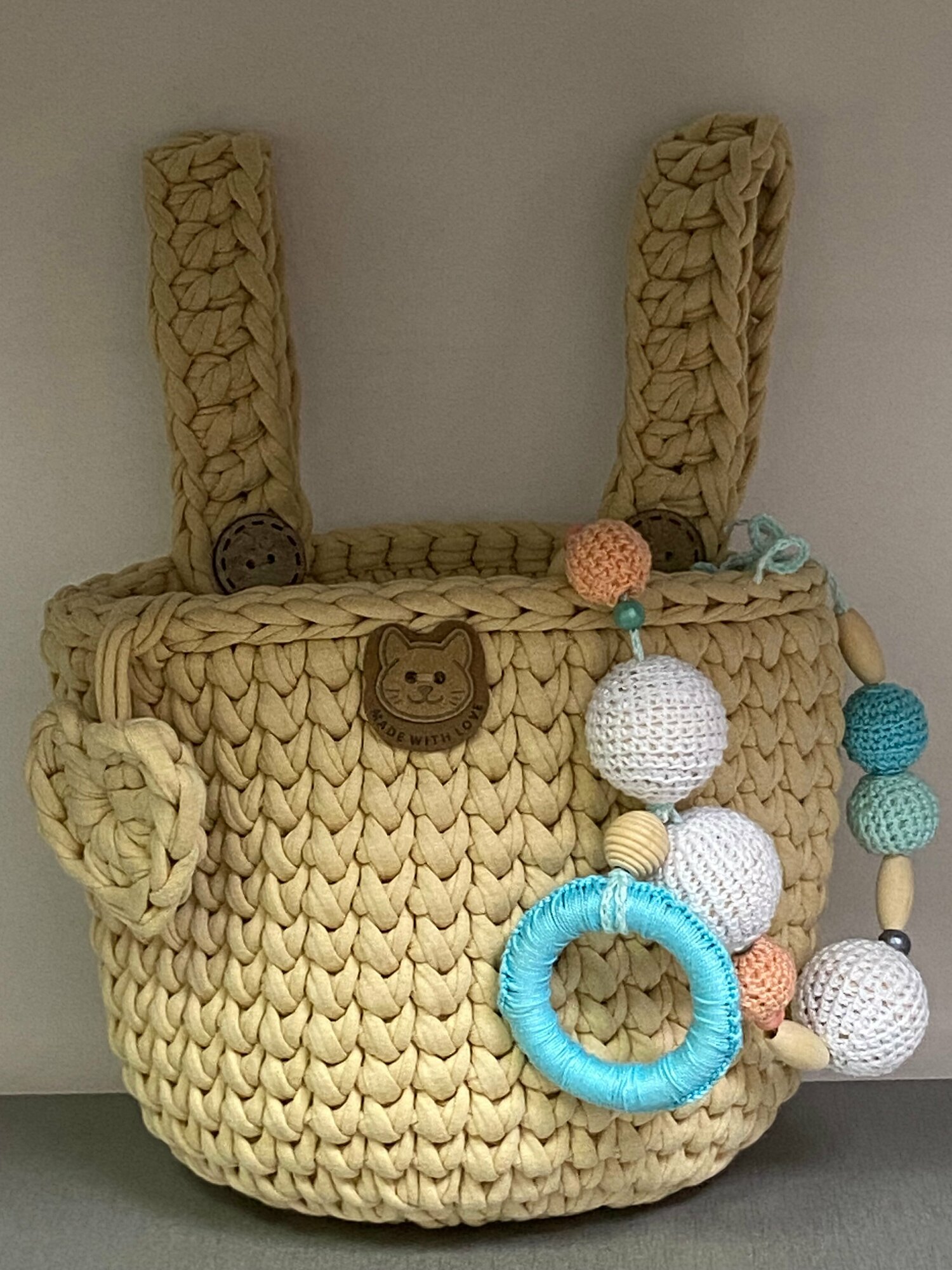 СохранитьПодвесной органайзер, вязаный кармашек на детскую кроватку, хлопок 100%, бежевый с сердцем интересное: