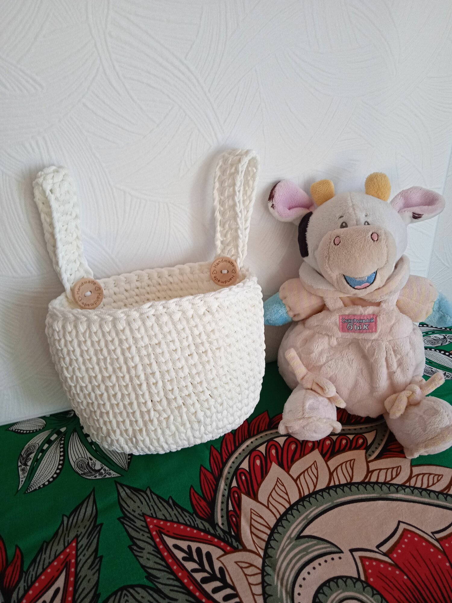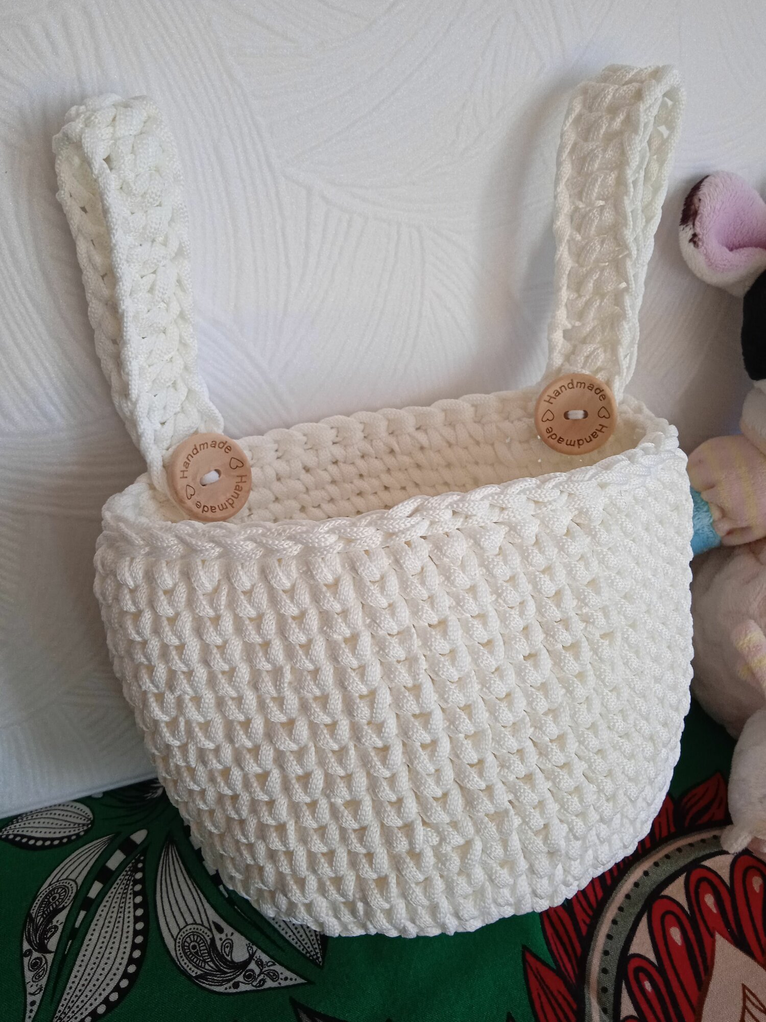 Купить Органайзер для кроватки вязаный, корзинка подвесная, универсальный, экологичный, цвет-БЕЛЫЙ