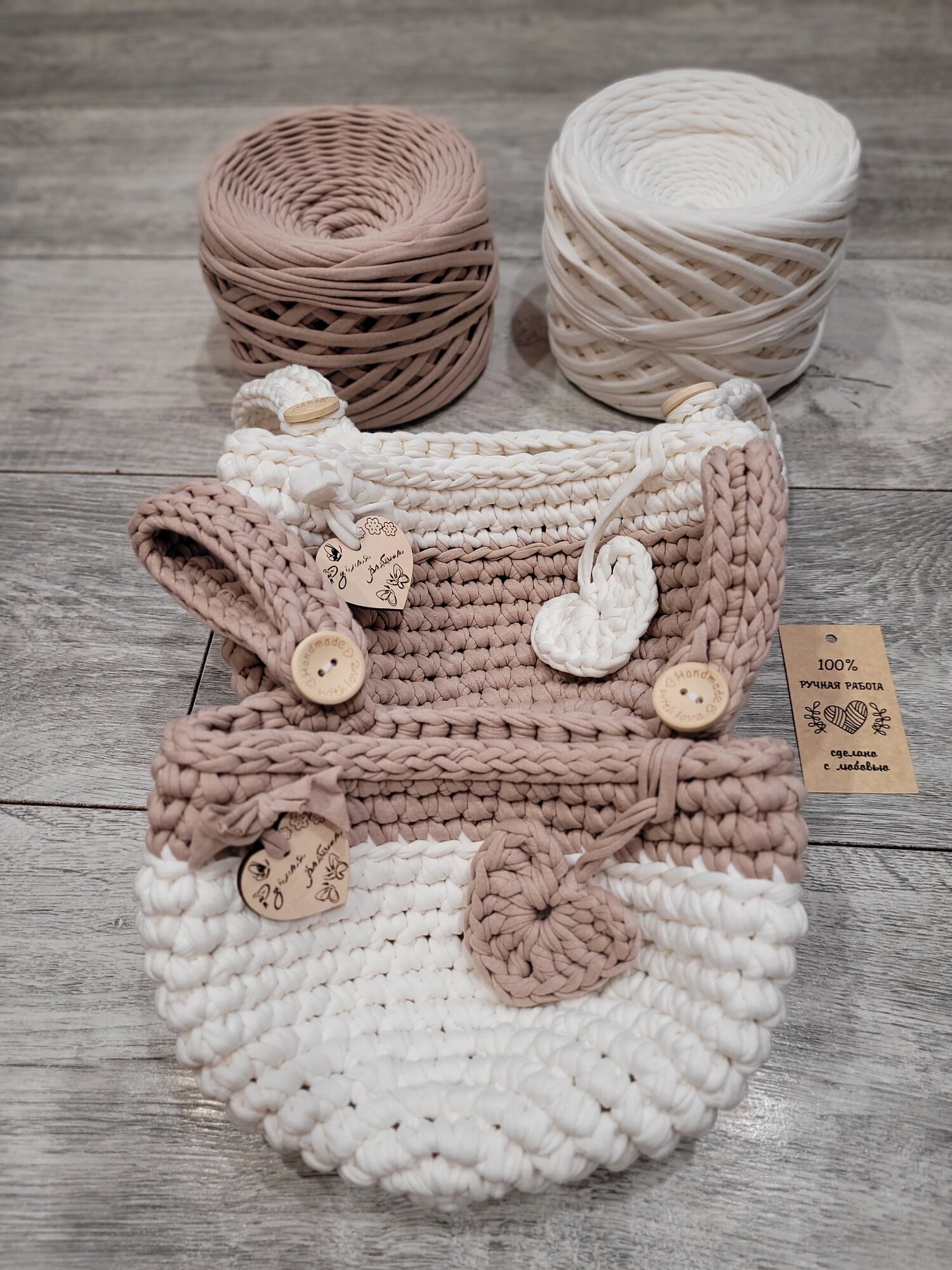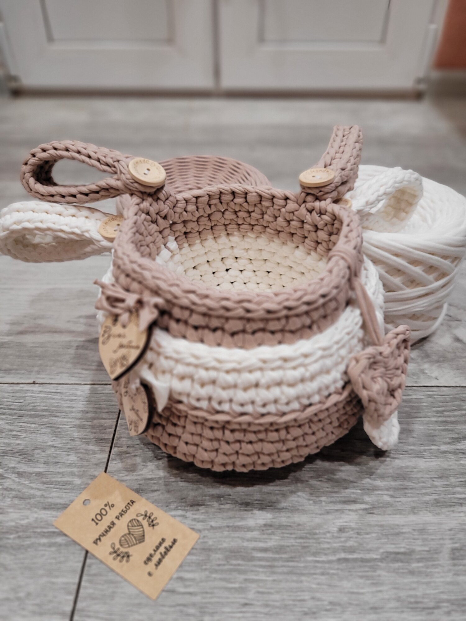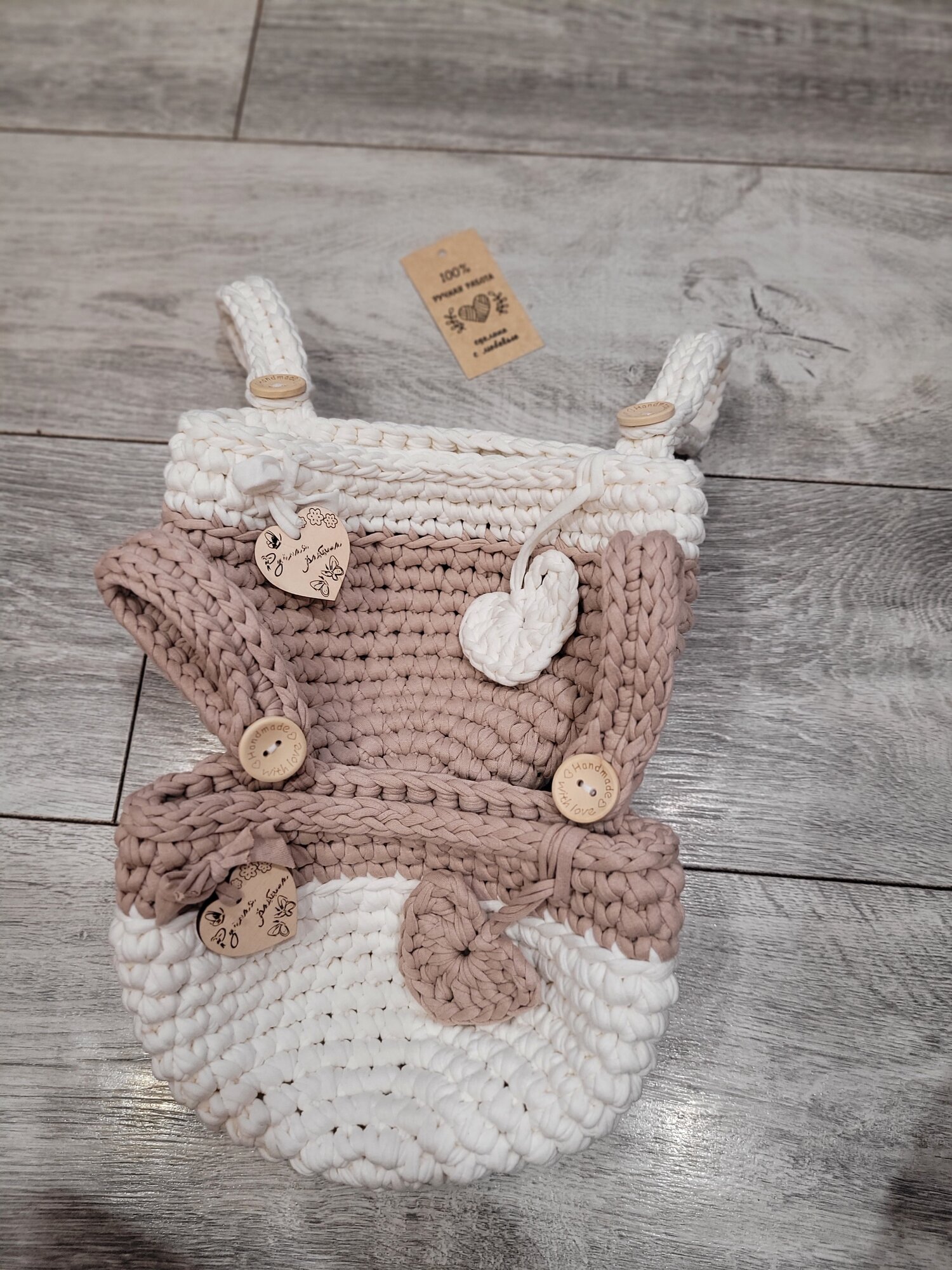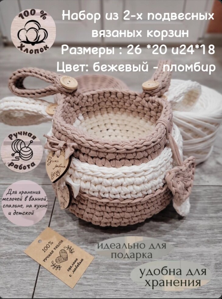 Набор из 2-х корзин /подвесная корзинка/ вязаный кармашек на детскую кроватку/бежевый-пломбир интересное: