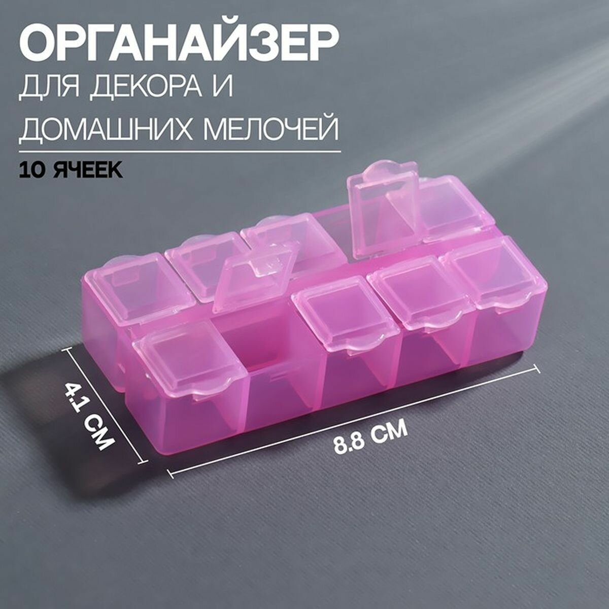 Органайзер для хранения мелочей, 10 ячеек, 8.7x4.3x2 см, розовый, 2 шт. интересное: