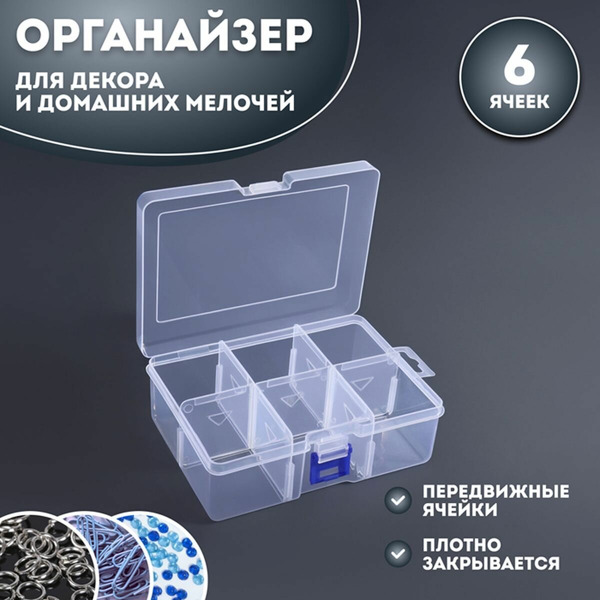 Органайзер для декора, передвижные ячейки, 6 ячеек, 16.5 x 12 x 5.8 см, цвет прозрачный, 1 шт. интересное: