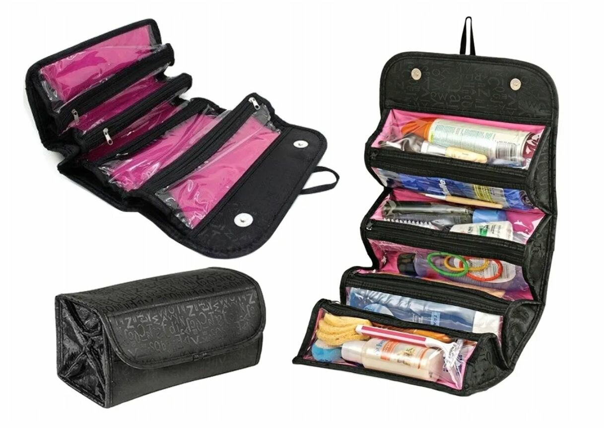 Органайзер для косметики- косметичка дорожная Roll- N- Go черный интересное: