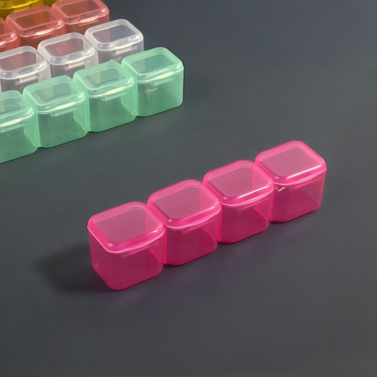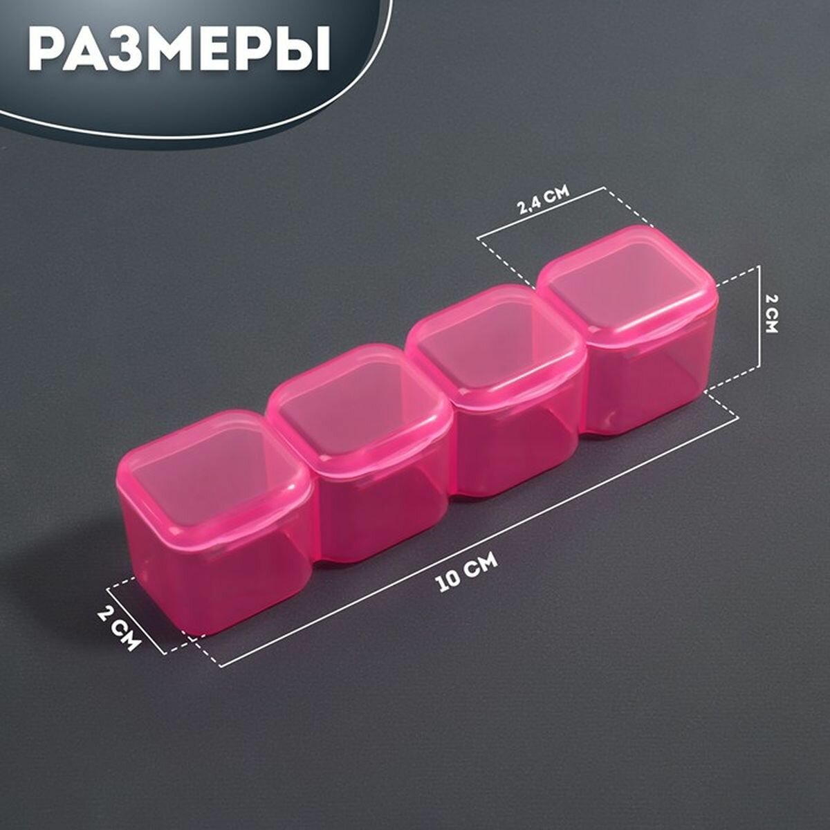 Органайзер для декора, передвижные ячейки, 8 ячеек, 10.5 x 7 x 2.4 см, цвет прозрачный, 4 шт.