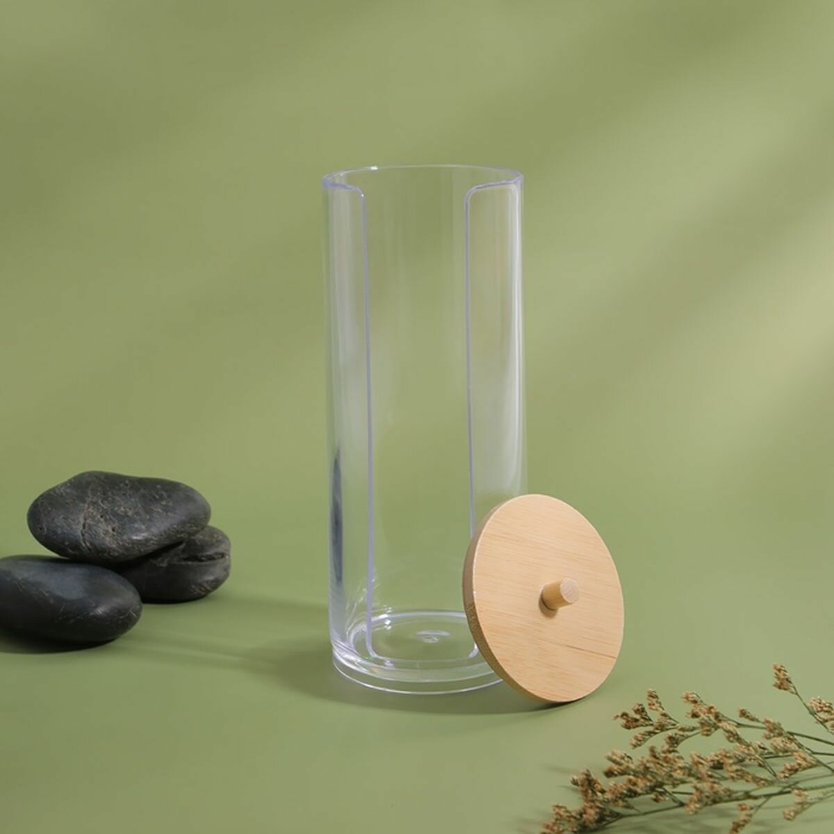 Купить Органайзер для хранения ватных дисков, с крышкой, d - 6.5 x 18 см, в картонной коробке, цвет прозрачный/коричневый, 1 шт.
