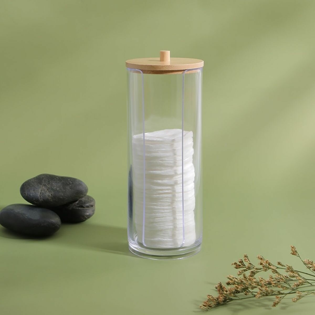 Органайзер для хранения ватных дисков, с крышкой, d - 6.5 x 18 см, в картонной коробке, цвет прозрачный/коричневый, 1 шт. интересное: