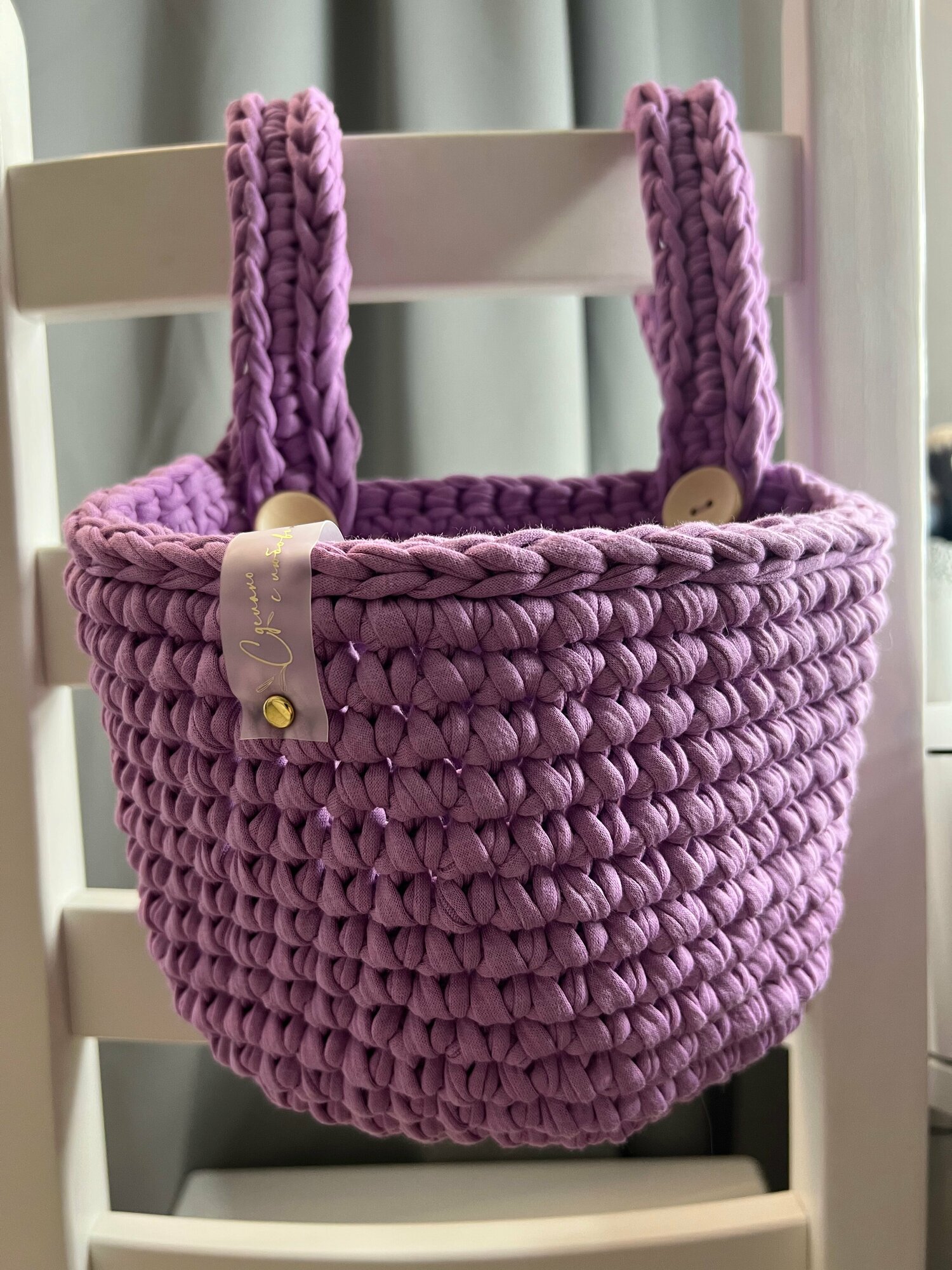 Купить Вязаная корзина на кроватку (сирень)
