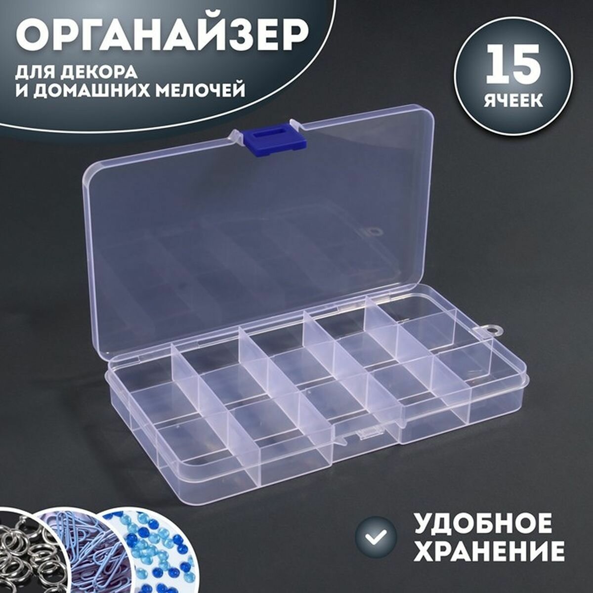 Купить Органайзер для декора, 15 съёмных ячеек, 17.4x10x2.2 см, прозрачный, 2 шт.