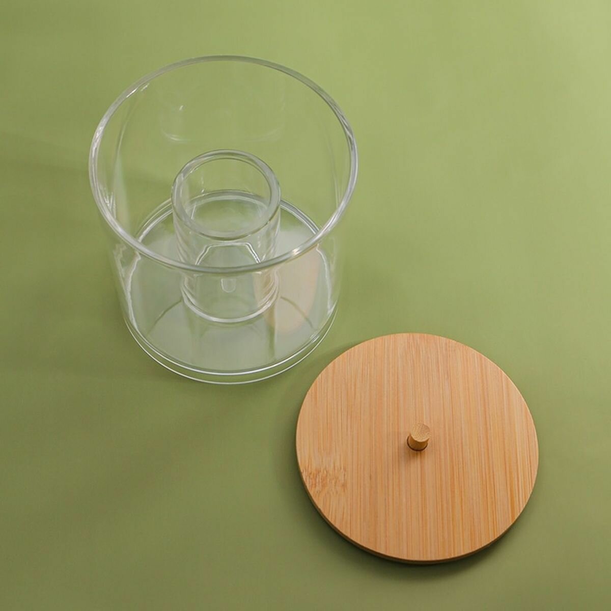 Органайзер для хранения ватных палочек "BAMBOO", с крышкой, d - 9.5 x 9.7 см, в картонной коробке, цвет прозрачный/коричневый, 1 шт. интересное: