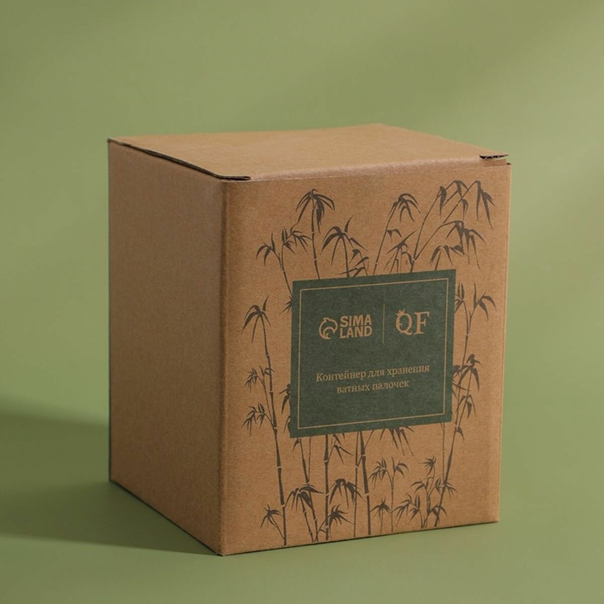 Купить Органайзер для хранения ватных палочек "BAMBOO", с крышкой, d - 9.5 x 9.7 см, в картонной коробке, цвет прозрачный/коричневый, 1 шт.