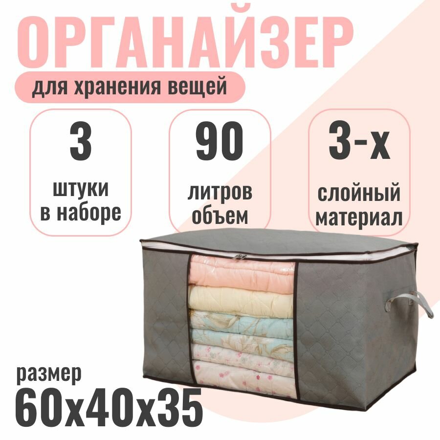 Купить Набор кофров 3 штуки, для хранения одежды, белья, одеял и подушек