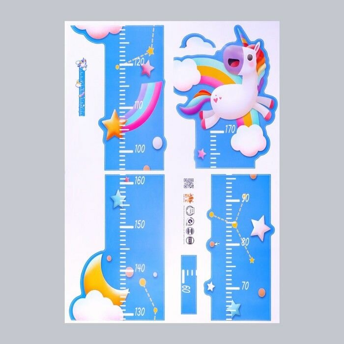 Наклейка пластик интерьерная цветная ростомер "Единорог на радуге" 50x70 см интересное: