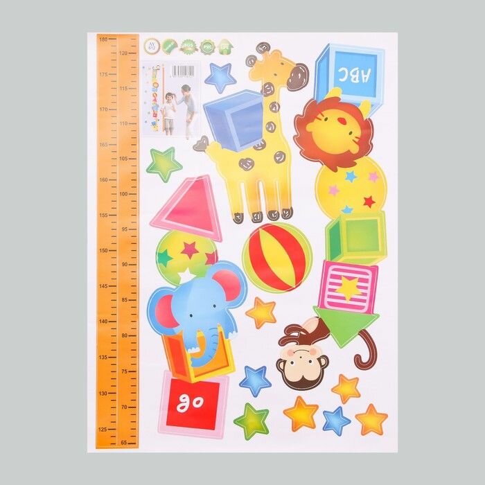 Купить Наклейка пластик интерьерная цветная ростомер "Звери и кубики" 45x60