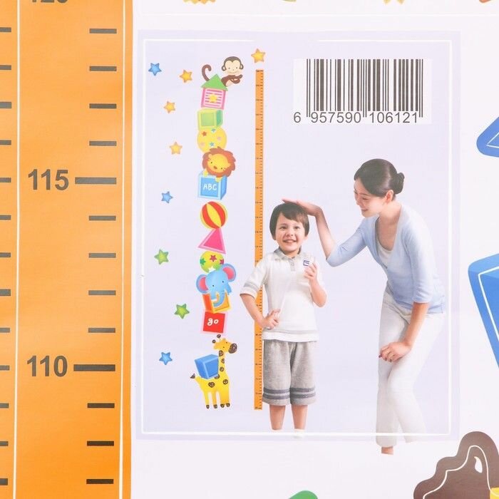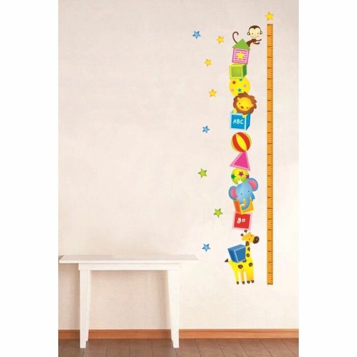 Наклейка пластик интерьерная цветная ростомер "Звери и кубики" 45x60 интересное: