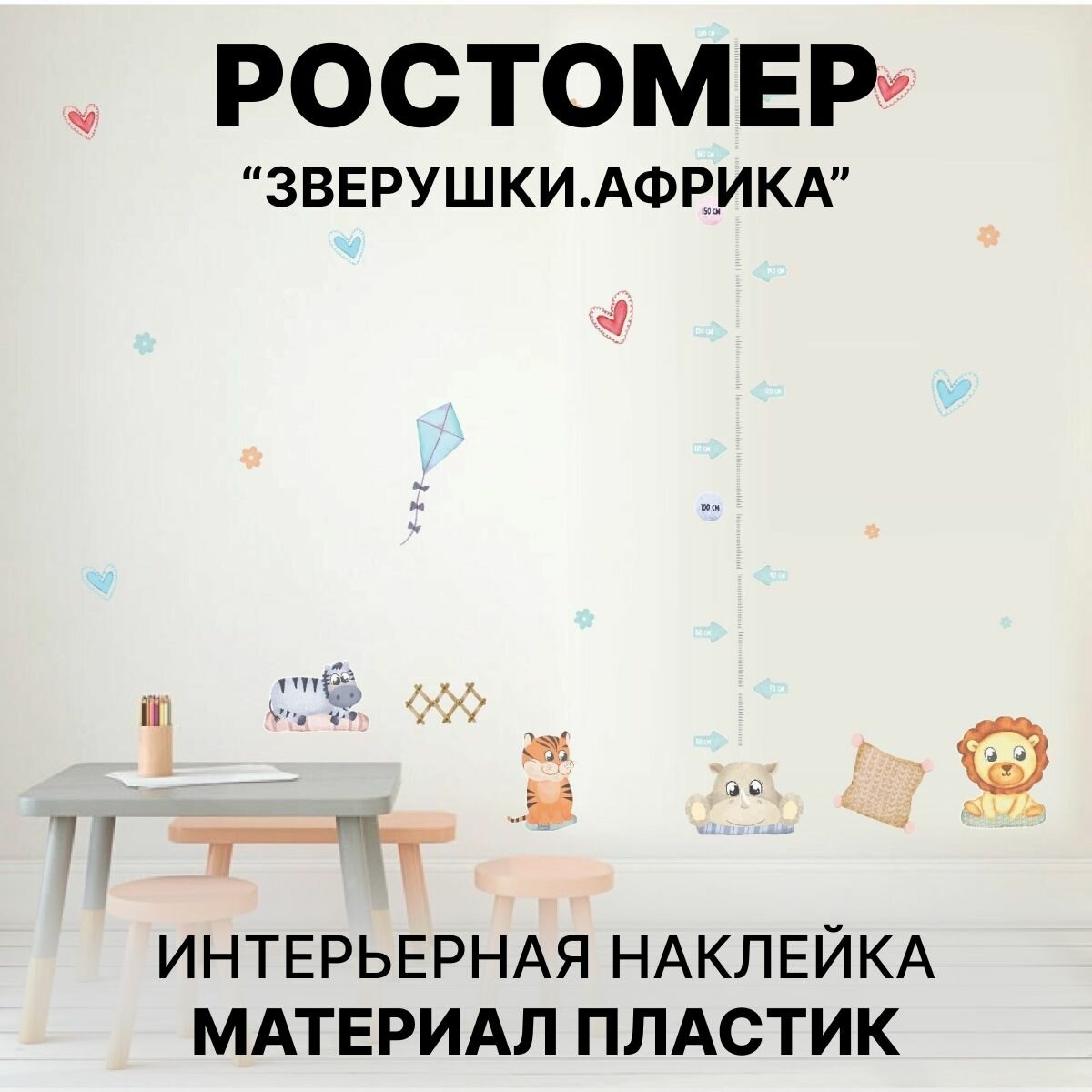 Купить Наклейка интерьерная цветная ростомер "Зверушки. Африка" 50х70 см