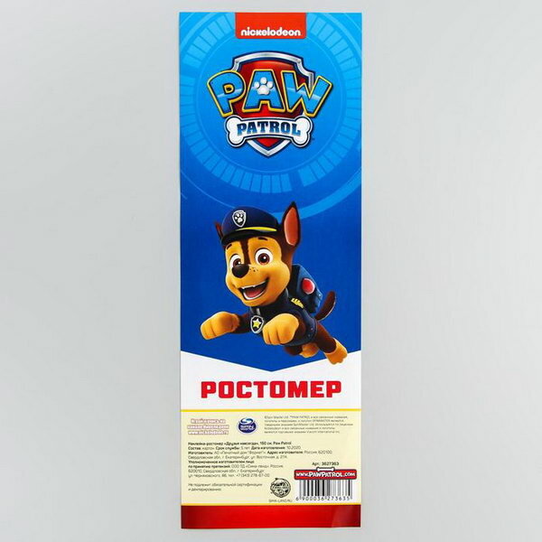 Наклейка - ростомер "Друзья навсегда", 150 см, Щенячий патруль интересное: