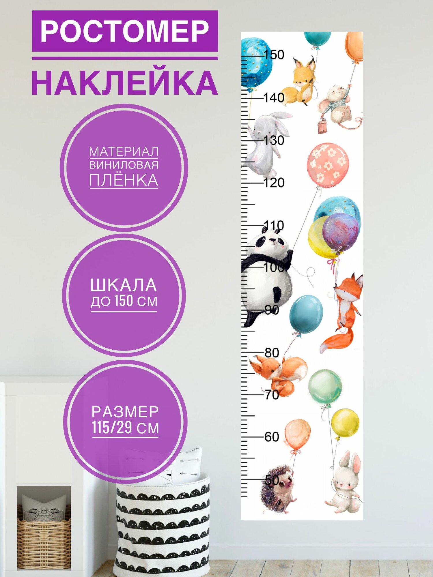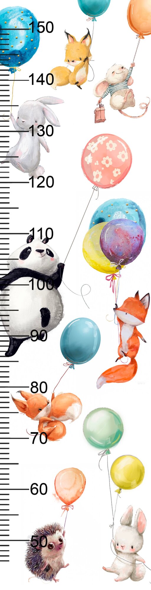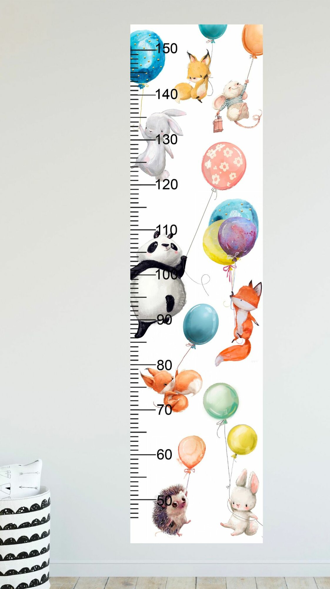 Наклейка ростомер интерьерная "Животные на шарах" 60x90 см