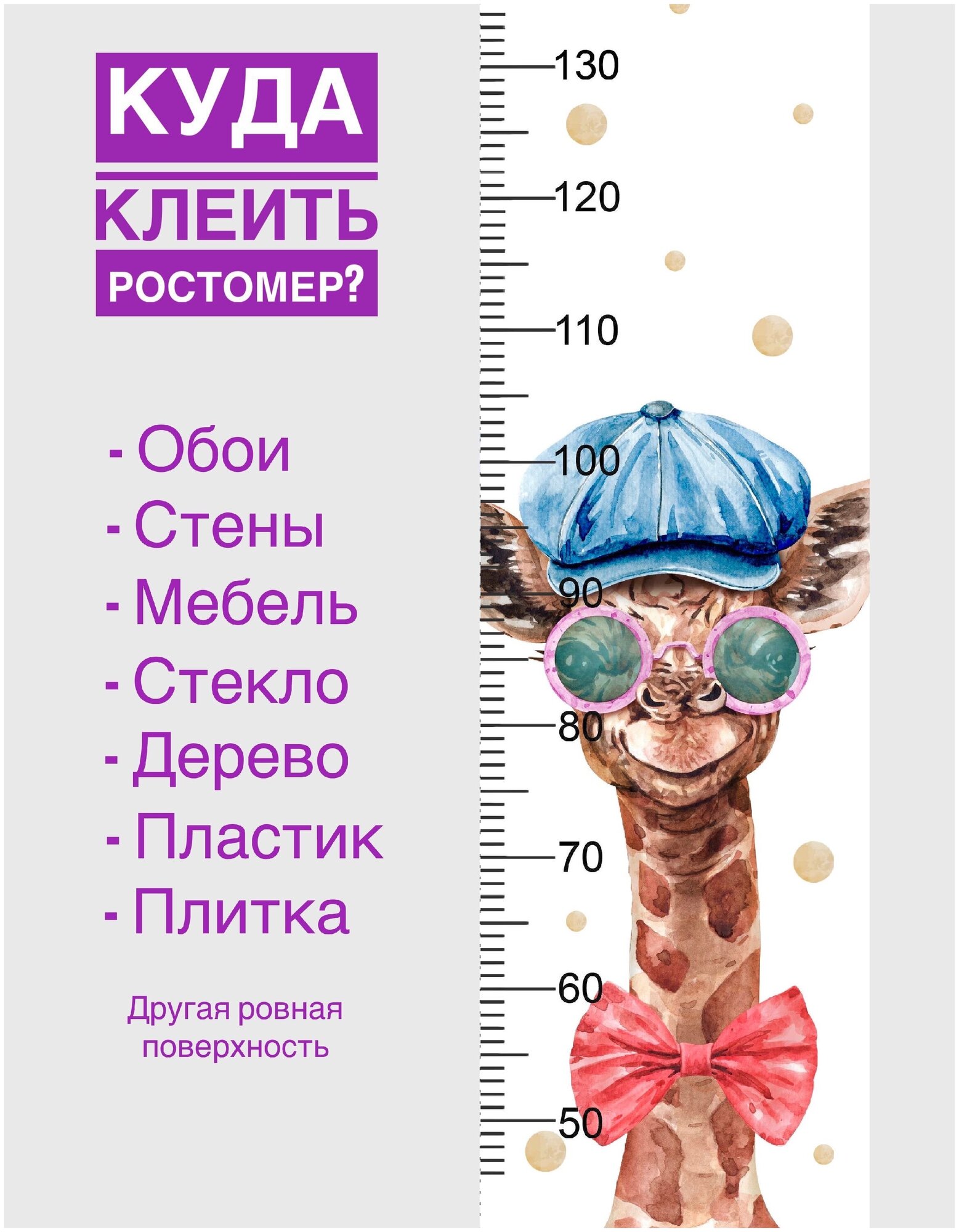 Ростомер детский наклейка на стену, ростомер для детей, измеритель линейка для роста, декор в детскую комнату, ростомер на стену с жирафом