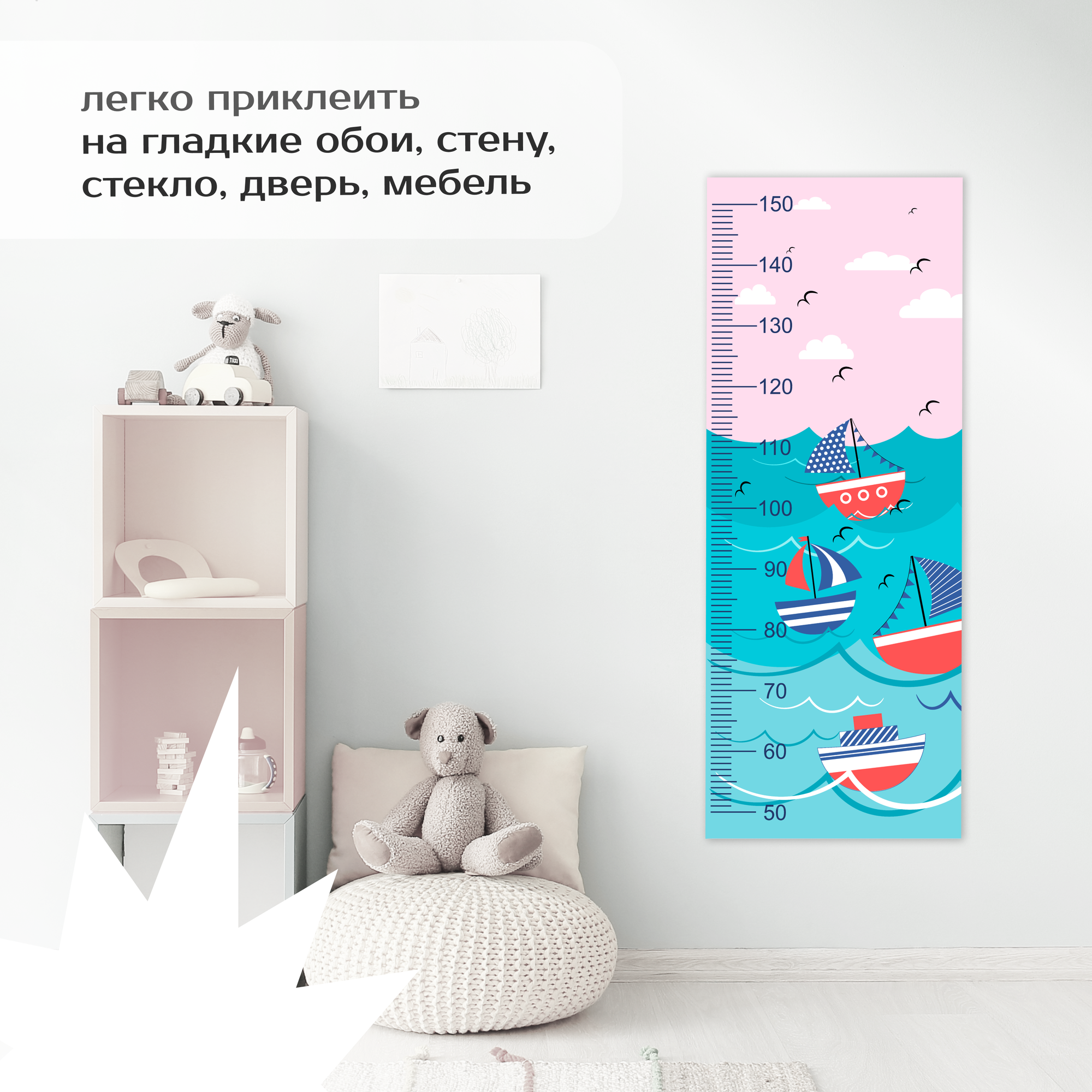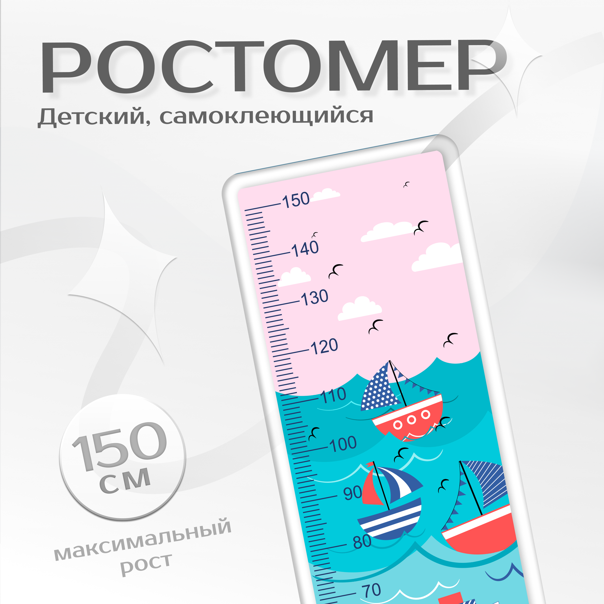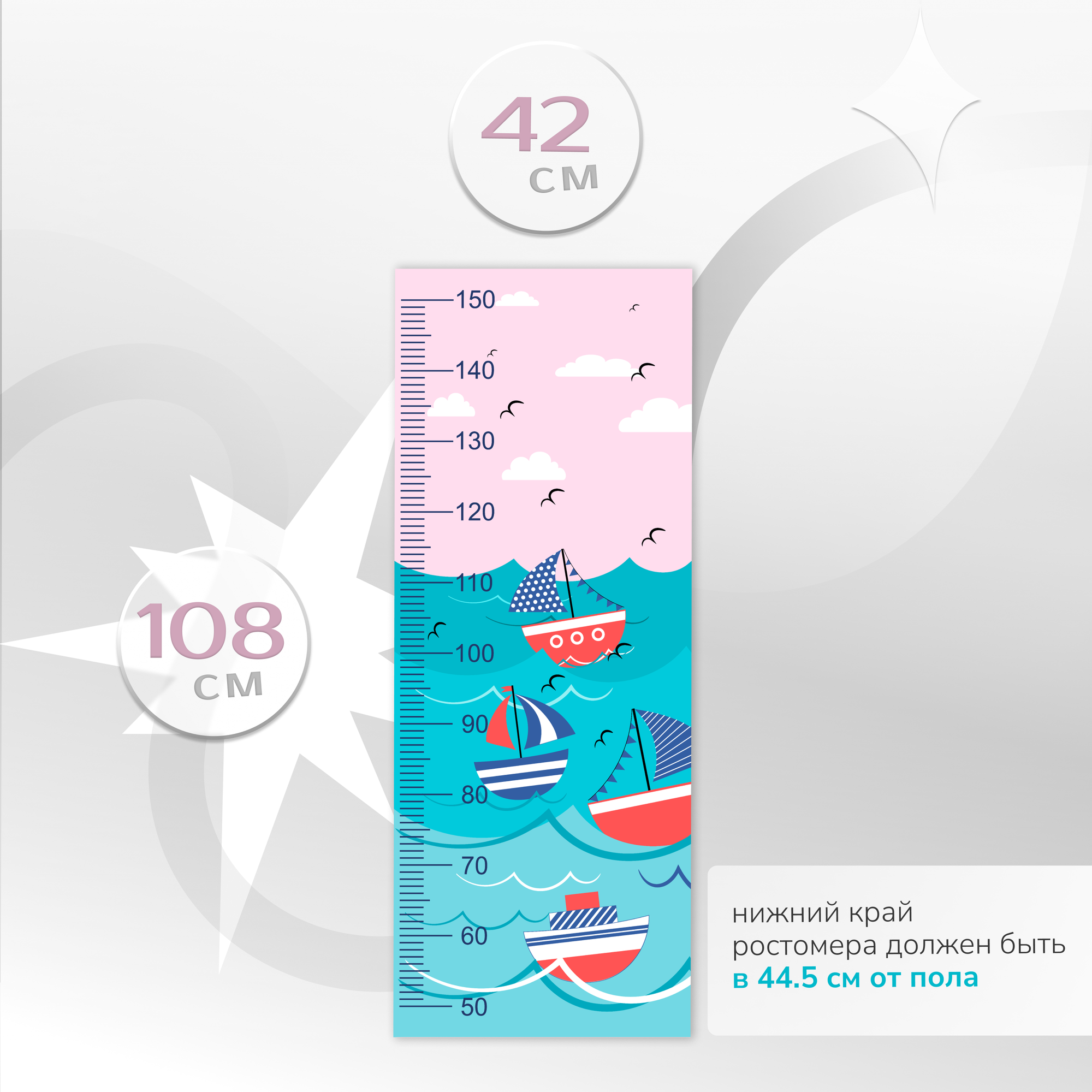 Купить Ростомер Fotooboikin "Кораблики", самоклеящийся, винил, 42x108 см