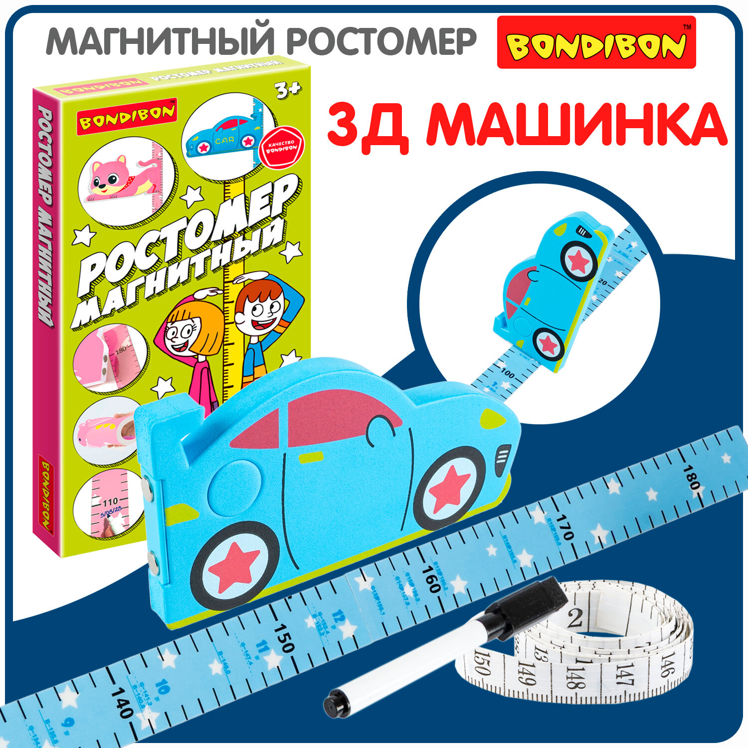 Ростомер детский на стену Bondibon 3D-фигура машинка магнитный, голубой интересное: