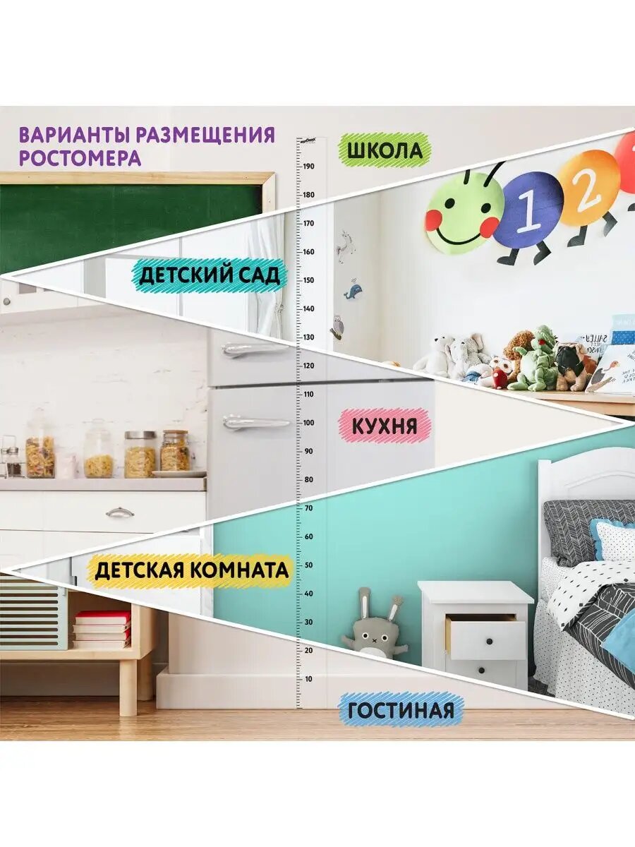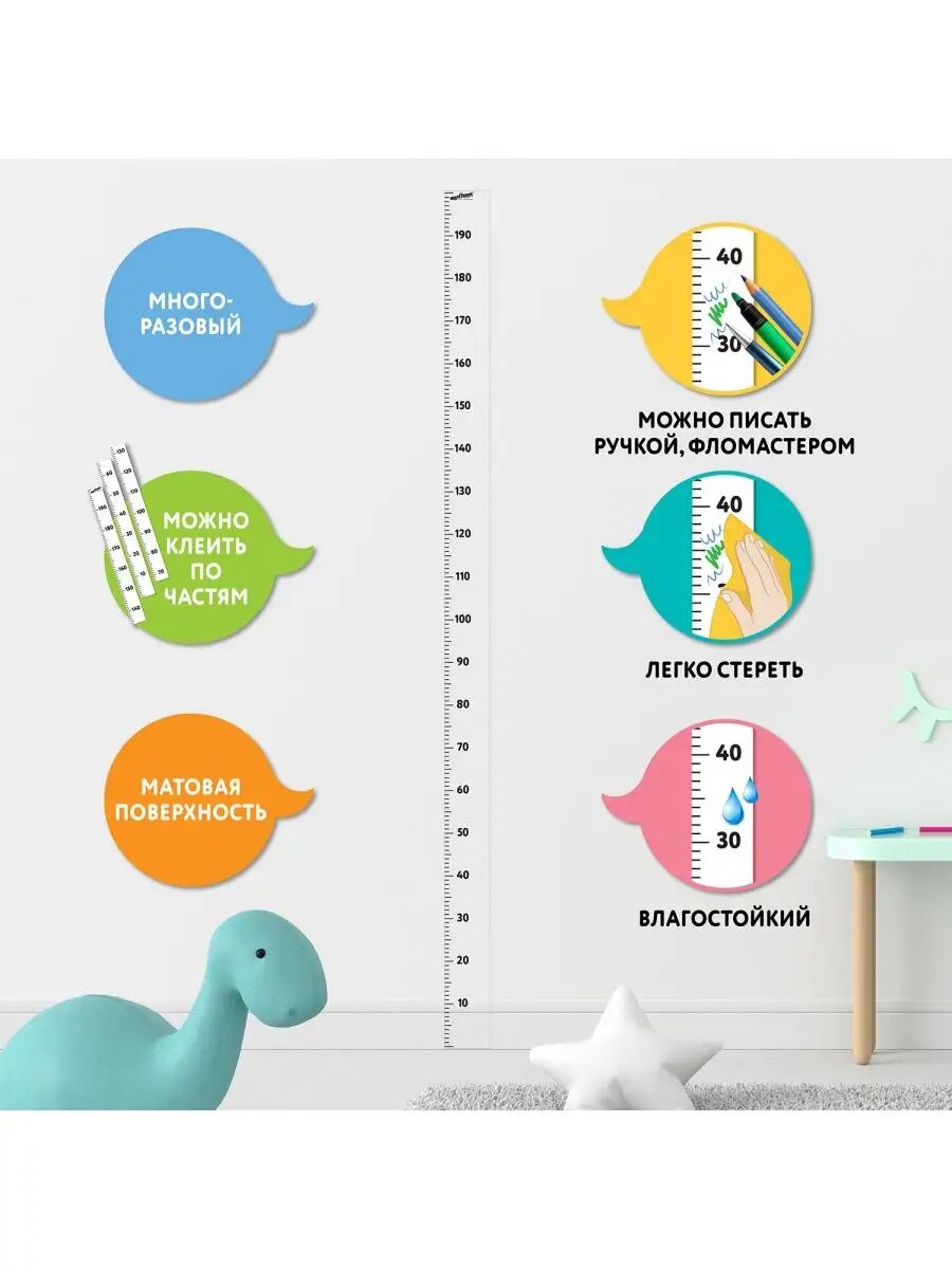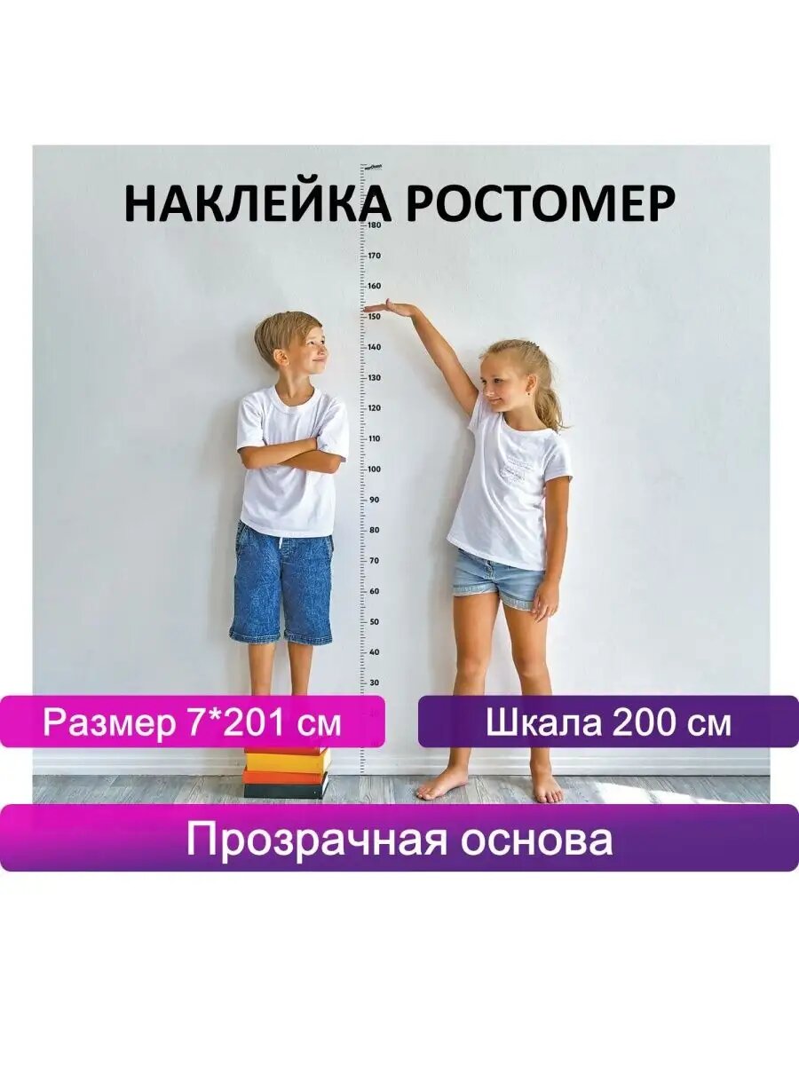 Ростомер ЮНЛАНДИЯ, виниловый, прозрачный, самоклеящийся, на стену, шкала 200 см интересное:
