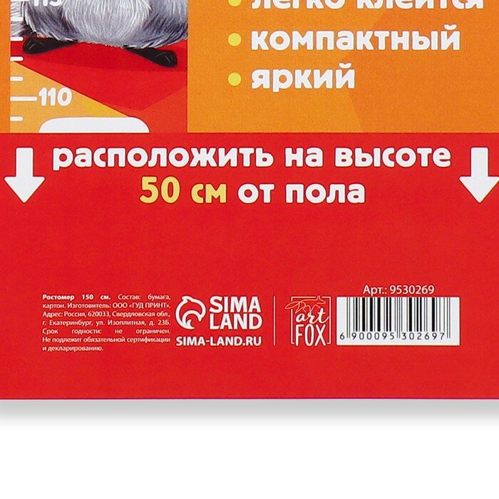 Купить Наклейка - ростомер 150 см «Енот», 2 штуки