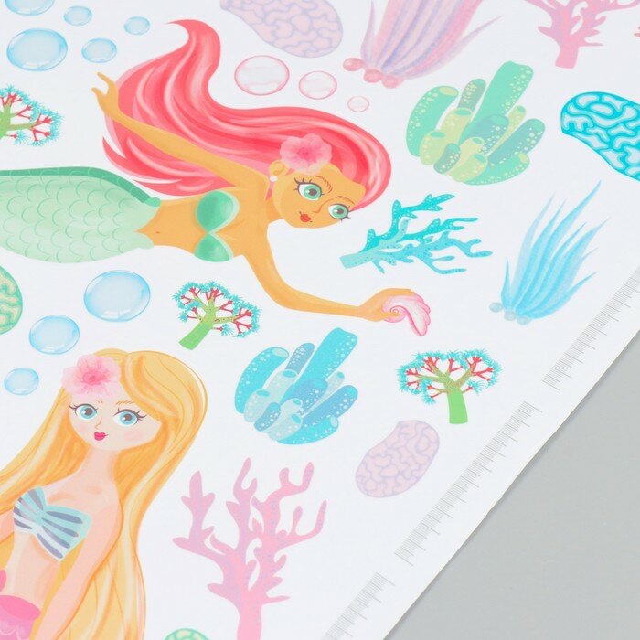 Наклейка интерьерная цветная ростомер "Русалочки" 50х70 см интересное: