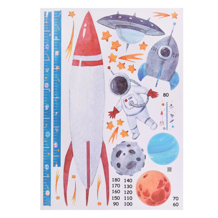 Купить Интерьерная наклейка ростомер "Космонавт" 50x70 см, ПВХ, в пластиковом пакете с блистерным п