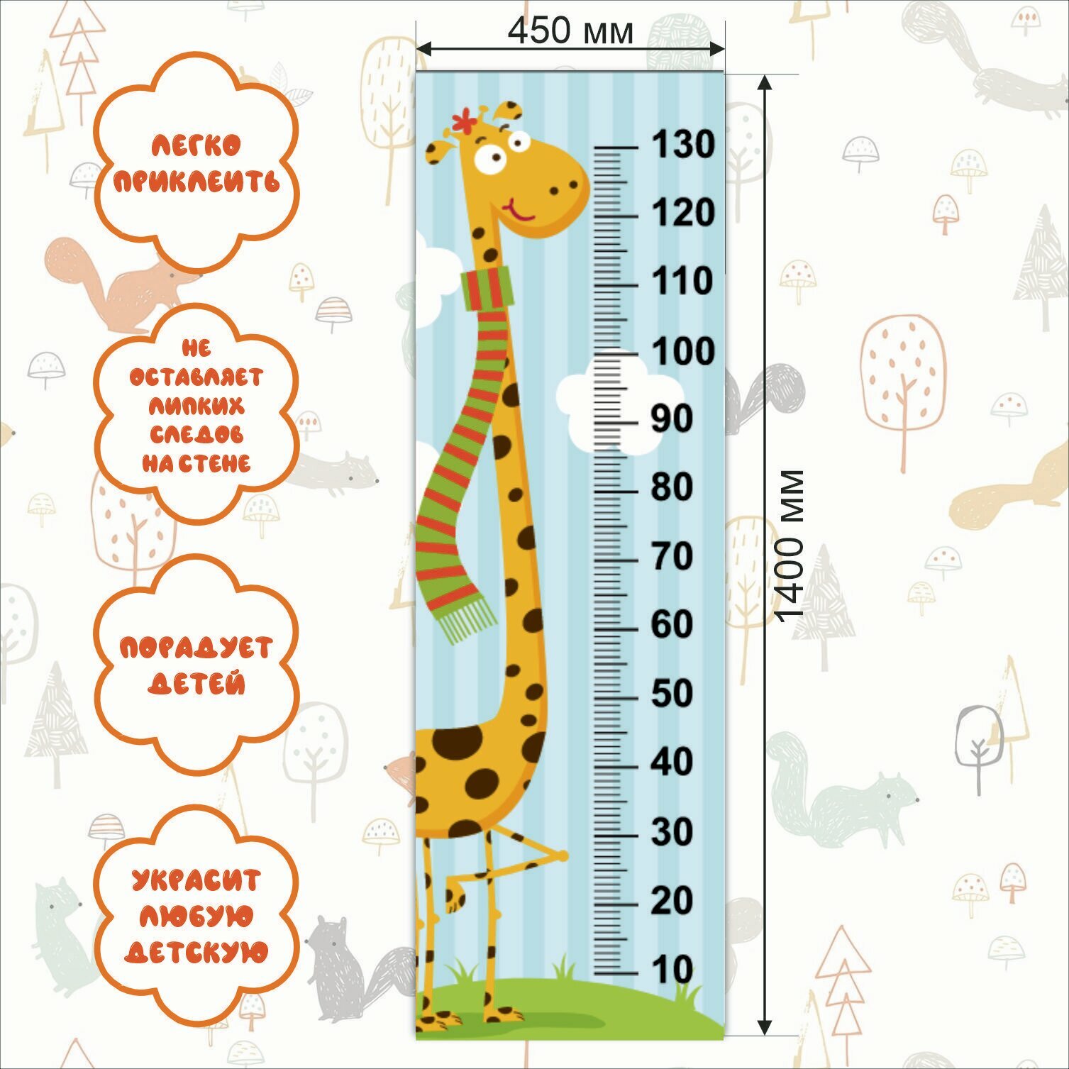 Ростометр детский "Жираф" 1400мм-450мм интересное: