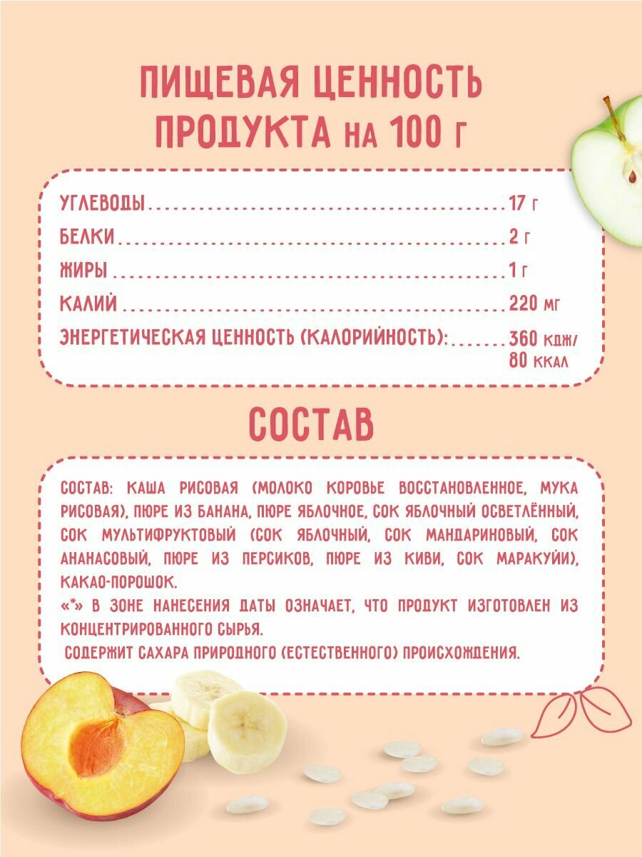 Пюре фруктовое с молочной кашей Маленькое Счастье рисовая + фрукты 111 гр x 12 шт с 9 месяцев интересное: