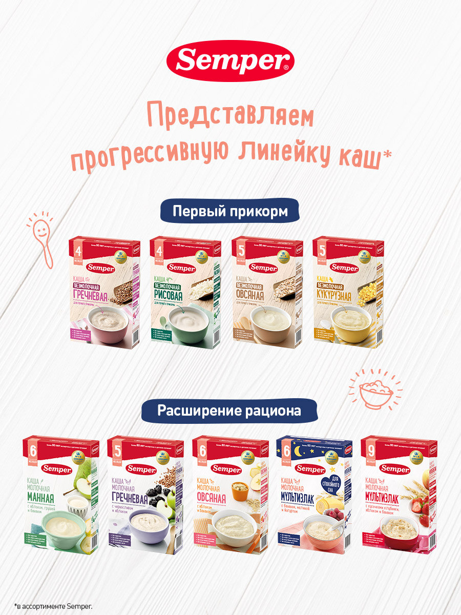 Каша молочная Semper Мультизлаковая с бананом, малиной и йогуртом без добавления сахара детская, с 6 месяцев, 180 г интересное: