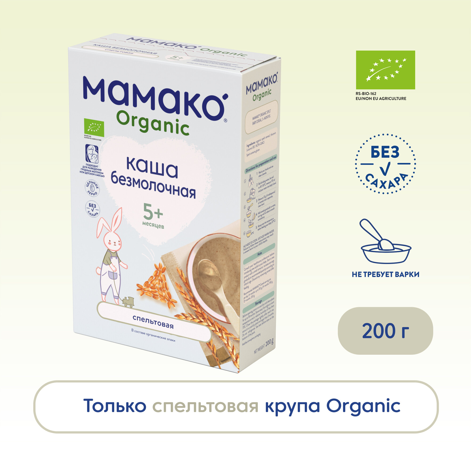 Каша безмолочная MAMAKO ORGANIC Спельтовая интересное:
